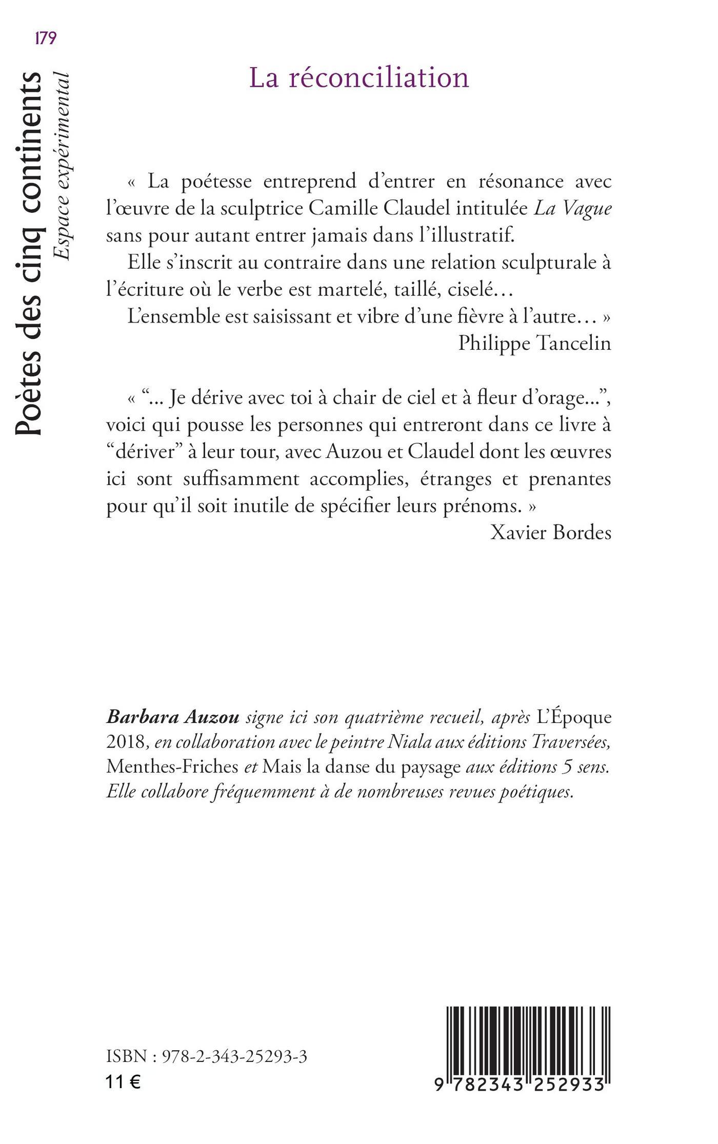« La poétesse entreprend d’entrer en résonance avec l’œuvre de la sculptrice Camille Claudel intitulée La Vague sans pour autant entrer jamais dans l’illustratif. Elle s’inscrit au contraire dans une relation sculpturale à l’écriture où le verbe est martelé, taillé, ciselé... L’ensemble est saisissant et vibre d’une fièvre à l’autre... » Philippe Tancelin« "... Je dérive avec toi à chair de ciel et à fleur d’orage...", voici qui pousse les personnes qui entreront dans ce livre à "dériver" à leur tour, avec Auzou et Claudel dont les œuvres ici sont suffisamment accomplies, étranges et prenantes pour qu’il soit inutile de spécifier leurs prénoms. » Xavier Bordes