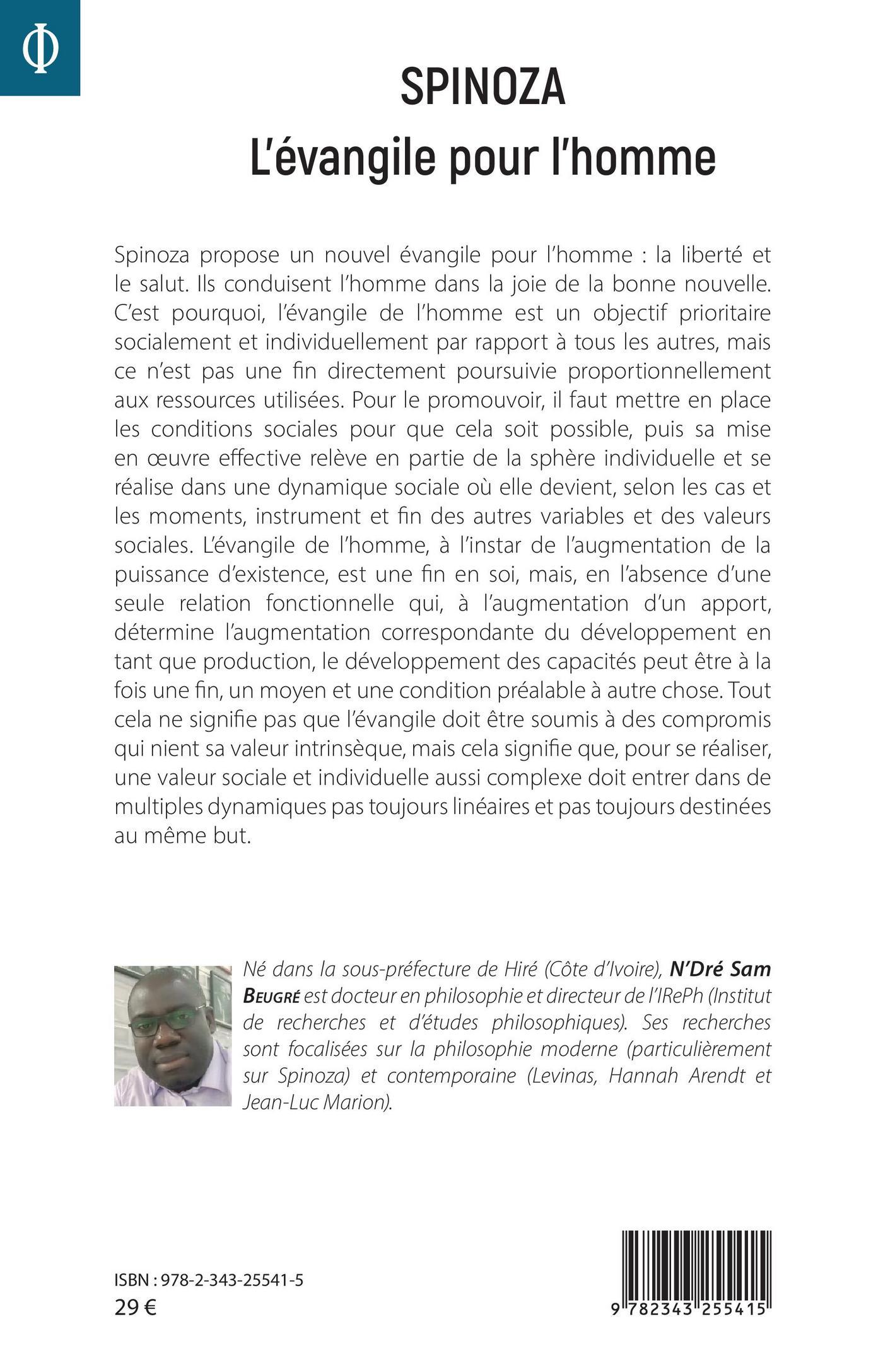 Spinoza propose un nouvel évangile pour l'homme : la liberté et le salut. Ils conduisent l'homme dans la joie de la bonne nouvelle. C'est pourquoi, l'évangile de l'homme est un objectif prioritaire, mais ce n'est pas une fin directement poursuivie proportionnellement aux ressources utilisées. Pour le promouvoir, il faut mettre en place des conditions sociales, puis sa mise en oeuvre effective relève en partie de la sphère individuelle et se réalise dans une dynamique sociale où elle devient instrument et fin des autres variables et des valeurs sociales. L'évangile de l'homme, à l'instar de l'augmentation de la puissance d'existence, est une fin en soi, mais, en l'absence d'une seule relation fonctionnelle, le développement des capacités peut être à la fois une fin, un moyen et une condition préalable à autre chose. Tout cela ne signifie pas que l'évangile doit être soumis à des compromis qui nient sa valeur intrinsèque, mais cela signifie que, pour se réaliser, une valeur sociale et individuelle aussi complexe doit entrer dans de multiples dynamiques pas toujours linéaires et pas toujours destinées au même but.
