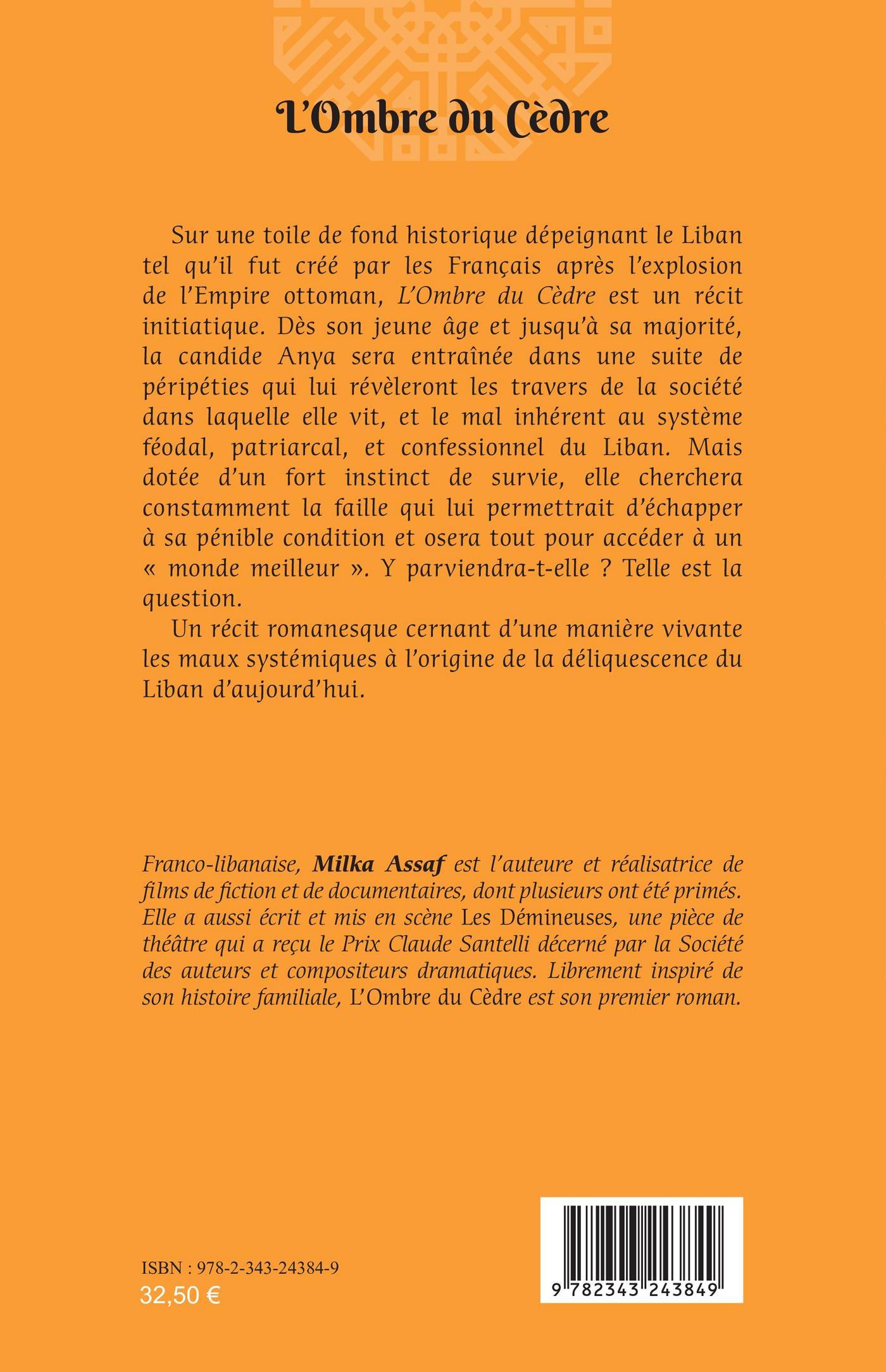 Sur une toile de fond historique dépeignant le Liban tel qu’il fut créé par les Français après l’explosion de l’Empire ottoman, L’Ombre du Cèdre est un récit initiatique. Dès son jeune âge et jusqu’à sa majorité, la candide Anya sera entraînée dans une suite de péripéties qui lui révèleront les travers de la société dans laquelle elle vit, et le mal inhérent au système féodal, patriarcal, et confessionnel du Liban. Mais dotée d’un fort instinct de survie, elle cherchera constamment la faille qui lui permettrait d’échapper à sa pénible condition et osera tout pour accéder à un « monde meilleur ». Un récit romanesque cernant d’une manière vivante les maux systémiques à l’origine de la déliquescence du Liban d’aujourd’hui.