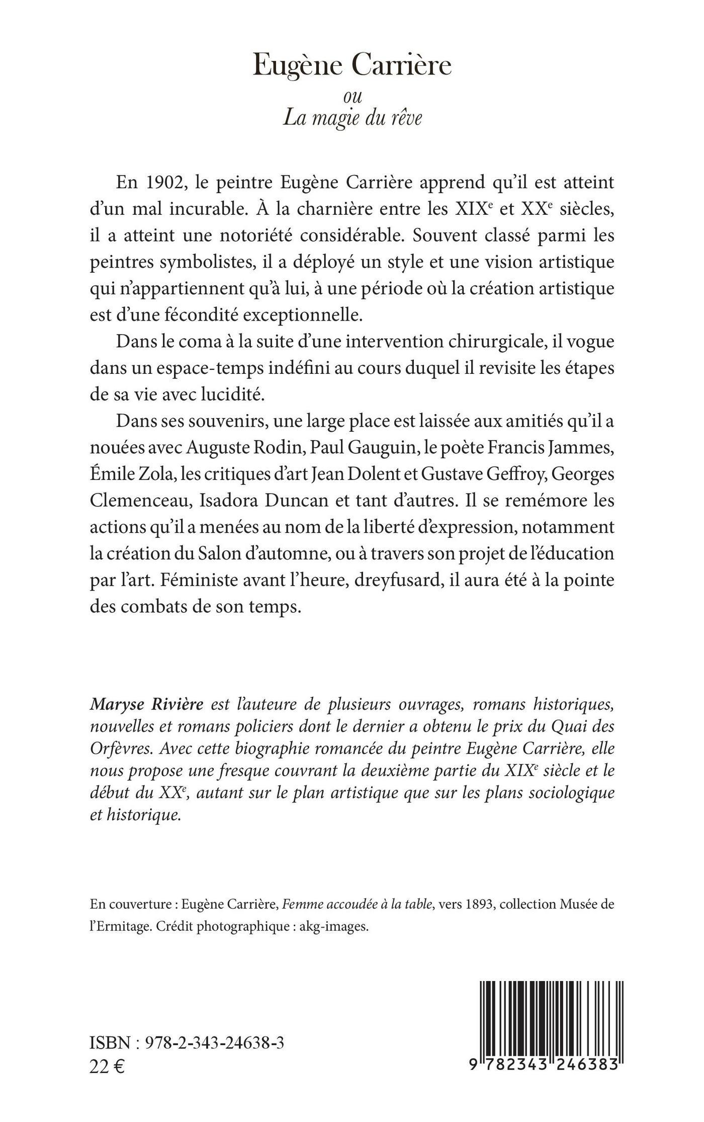 En 1902, le peintre Eugène Carrière apprend qu'il est atteint d'un mal incurable. À la charnière entre les XIXe et XXe siècles, il a atteint une notoriété considérable. Souvent classé parmi les peintres symbolistes, il a déployé un style et une vision artistique qui n'appartiennent qu'à lui, à une période où la création artistique est d'une fécondité exceptionnelle. Dans le coma à la suite d'une intervention chirurgicale, il vogue dans un espace-temps indéfini au cours duquel il revisite les étapes de sa vie avec lucidité. Dans ses souvenirs, une large place est laissée aux amitiés qu'il a nouées avec Auguste Rodin, Paul Gauguin, le poète Francis Jammes, Émile Zola, les critiques d'art Jean Dolent et Gustave Geffroy, Georges Clemenceau, Isadora Duncan et tant d'autres. Il se remémore les actions qu'il a menées au nom de la liberté d'expression, notamment la création du Salon d'automne, ou à travers son projet de l'éducation par l'art. Féministe avant l'heure, dreyfusard, il aura été à la pointe des combats de son temps.