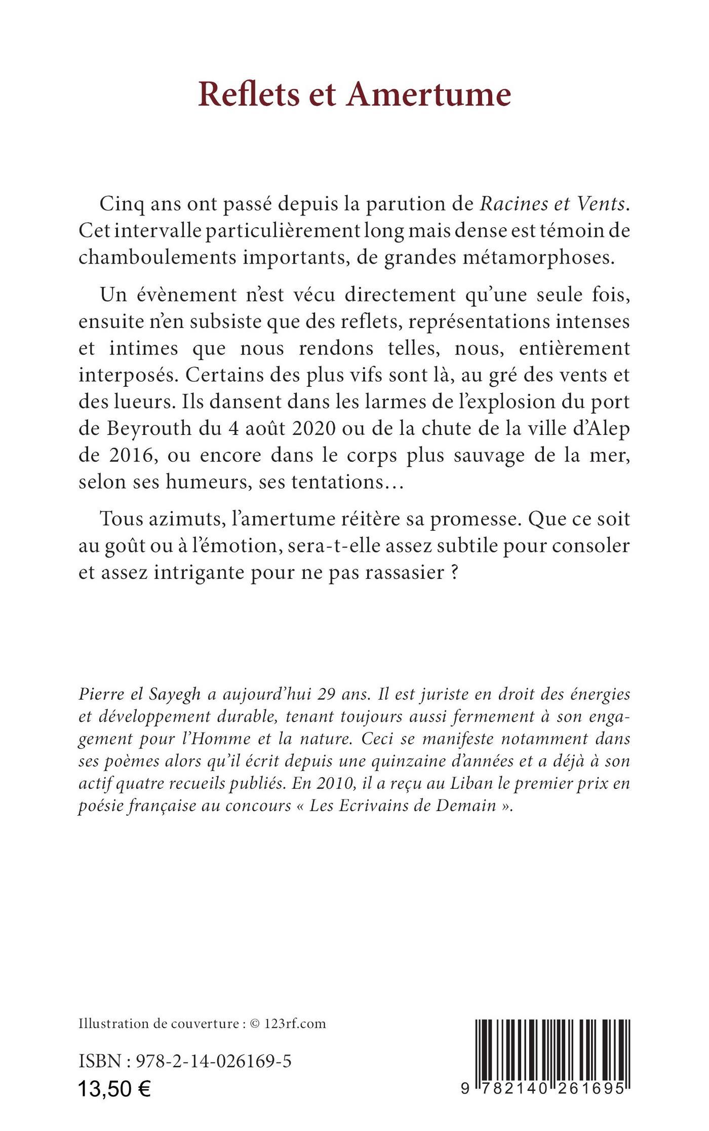 Un évènement n’est vécu directement qu’une seule fois, ensuite n’en subsiste que des reflets, représentations intenses et intimes que nous rendons telles, nous, entièrement interposés. Certains des plus vifs sont là, au gré des vents et des lueurs. Ils dansent dans les larmes de l’explosion du port de Beyrouth du 4 août 2020 ou de la chute de la ville d’Alep de 2016, ou encore dans le corps plus sauvage de la mer, selon ses humeurs, ses tentations... Tous azimuts, l’amertume réitère sa promesse. Que ce soit au goût ou à l’émotion, sera-t-elle assez subtile pour consoler et assez intrigante pour ne pas rassasier ?