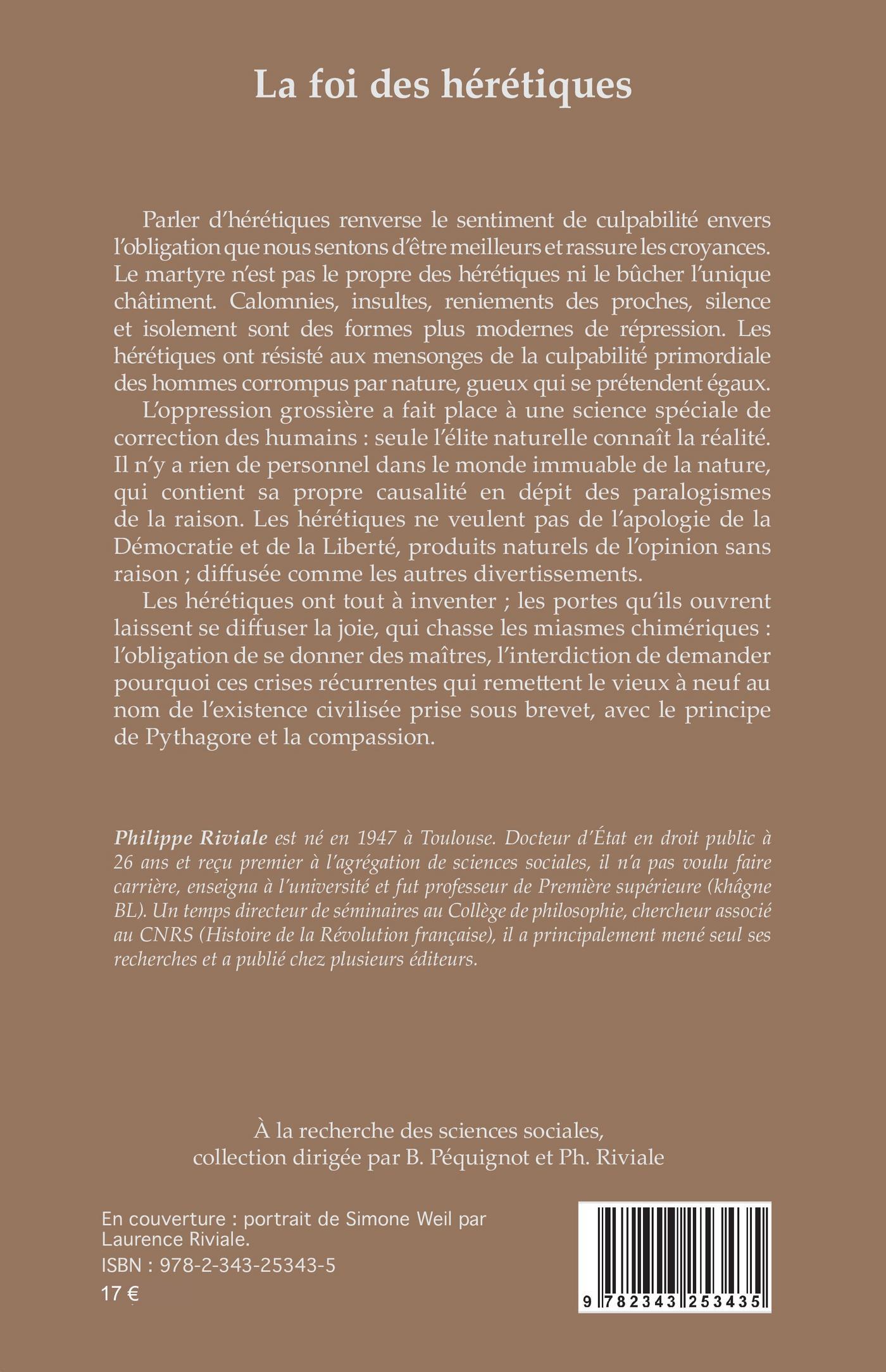 Parler d’hérétiques renverse le sentiment de culpabilité envers l’obligation que nous sentons d’être meilleurs et rassure les croyances. Le martyre n’est pas le propre des hérétiques ni le bûcher l’unique châtiment. Calomnies, insultes, reniements des proches, silence et isolement sont des formes plus modernes de répression. Les hérétiques ont résisté aux mensonges de la culpabilité primordiale des hommes corrompus par nature, gueux qui se prétendent égaux. L’oppression grossière a fait place à une science spéciale de correction des humains : seule l’élite naturelle connaît la réalité. Il n’y a rien de personnel dans le monde immuable de la nature, qui contient sa propre causalité en dépit des paralogismes de la raison. Les hérétiques ne veulent pas de l’apologie de la Démocratie et de la Liberté, produits naturels de l’opinion sans raison ; diffusée comme les autres divertissements. Les hérétiques ont tout à inventer ; les portes qu’ils ouvrent laissent se diffuser la joie, qui chasse les miasmes chimériques : l’obligation de se donner des maîtres, l’interdiction de demander pourquoi ces crises récurrentes qui remettent le vieux à neuf au nom de l’existence civilisée prise sous brevet, avec le principe de Pythagore et la compassion.