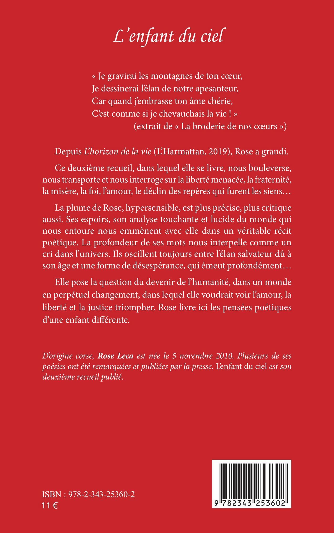 Depuis L’horizon de la vie, Rose a grandi. Ce deuxième recueil, dans lequel elle se livre, nous bouleverse, nous transporte et nous interroge sur la liberté menacée, la fraternité, la misère, la foi, l’amour, le déclin des repères qui furent les siens... La plume de Rose, hypersensible, est plus précise, plus critique aussi. Ses espoirs, son analyse touchante et lucide du monde qui nous entoure nous emmènent avec elle dans un véritable récit poétique. La profondeur de ses mots nous interpelle comme un cri dans l’univers. Ils oscillent toujours entre l’élan salvateur dû à son âge et une forme de désespérance, qui émeut profondément... Elle pose la question du devenir de l’humanité, dans un monde en perpétuel changement, dans lequel elle voudrait voir l’amour, la liberté et la justice triompher. Rose livre ici les pensées poétiques d’une enfant différente.