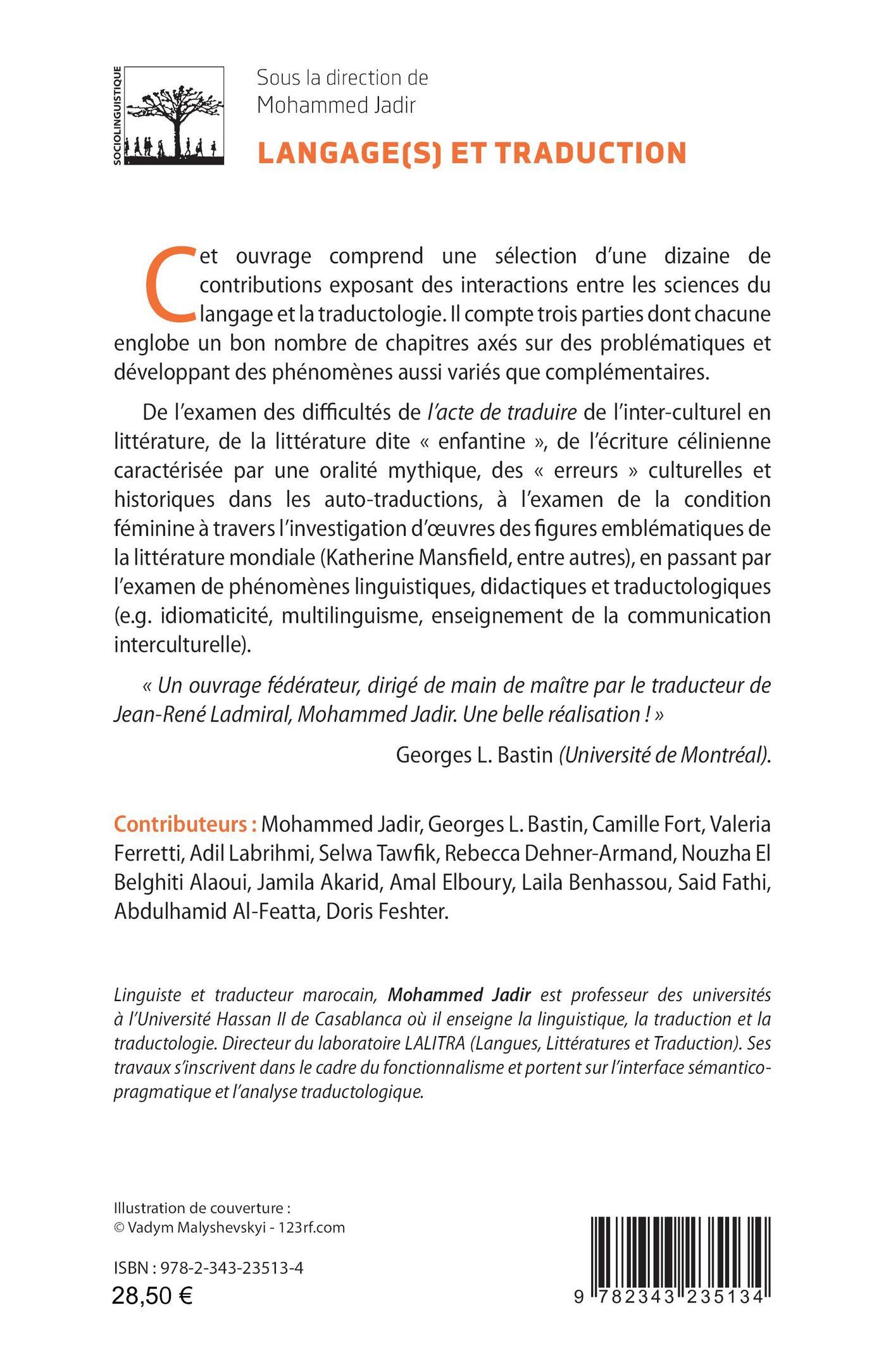 Cet ouvrage comprend une sélection d’une dizaine de contributions exposant des interactions entre les sciences du langage et la traductologie. Il compte trois parties dont chacune englobe un bon nombre de chapitres axés sur des problématiques et développant des phénomènes aussi variés que complémentaires. De l’examen des difficultés de l’acte de traduire de l’inter-culturel en littérature, de la littérature dite « enfantine », de l’écriture célinienne caractérisée par une oralité mythique, des « erreurs » culturelles et historiques dans les auto-traductions, à l’examen de la condition féminine à travers l’investigation d’oeuvres des figures emblématiques de la littérature mondiale (Katherine Mansfield, entre autres), en passant par l’examen de phénomènes linguistiques, didactiques et traductologiques (e.g. idiomaticité, multilinguisme, enseignement de la communication interculturelle).