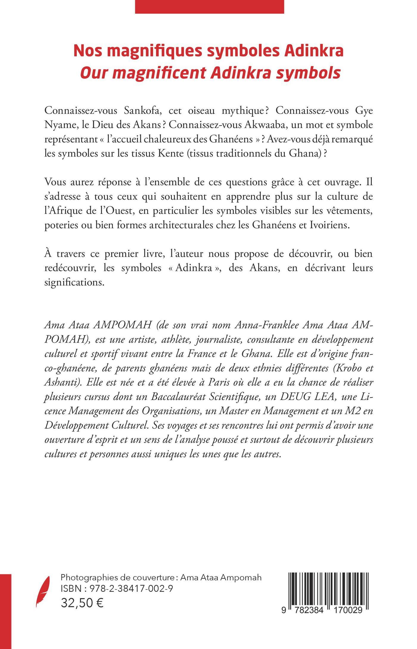 Connaissez-vous Sankofa, cet oiseau mythique? Connaissez-vous Gye Nyame, le Dieu des Akans? Connaissez-vous Akwaaba, un mot et symbole représentant « l'accueil chaleureux des Ghanéens »? Avez-vous déjà remarqué les symboles sur les tissus Kente (tissus traditionnels du Ghana)? Vous aurez réponse à l'ensemble de ces questions grâce à cet ouvrage. Il s'adresse à tous ceux qui souhaitent en apprendre plus sur la culture de l'Afrique de l'Ouest, en particulier les symboles visibles sur les vêtements, poteries ou bien formes architecturales chez les Ghanéens et Ivoiriens. À travers ce premier livre, l'auteur nous propose de découvrir, ou bien redécouvrir, les symboles « Adinkra », des Akans, en décrivant leurs significations.