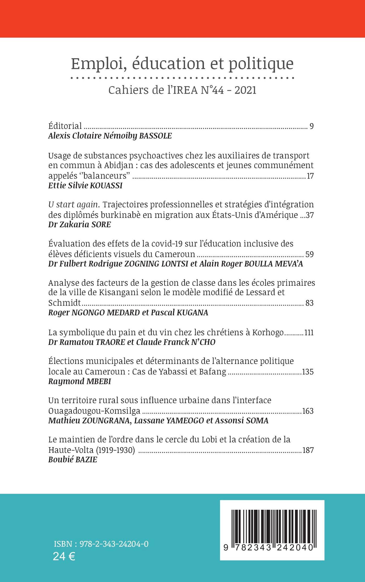 EAN13 (papier) : 9782343242040