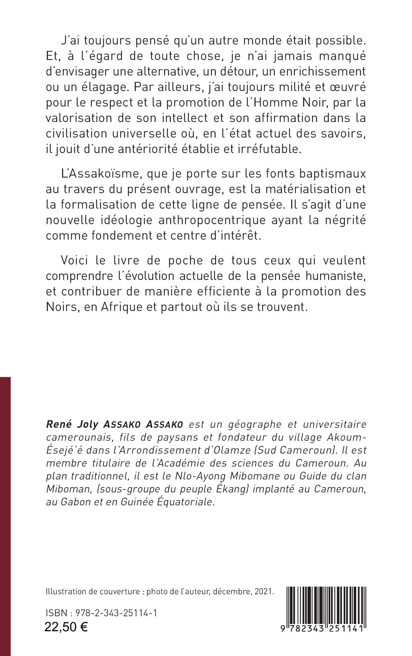 "J’ai toujours pensé qu’un autre monde était possible. Et, à l’égard de toute chose, je n’ai jamais manqué d’envisager une alternative, un détour, un enrichissement ou un élagage. Par ailleurs, j’ai toujours milité et oeuvré pour le respect et la promotion de l’Homme Noir, par la valorisation de son intellect et son affirmation dans la civilisation universelle où, en l’état actuel des savoirs, il jouit d’une antériorité établie et irréfutable. L’Assakoïsme, que je porte sur les fonts baptismaux au travers du présent ouvrage, est la matérialisation et la formalisation de cette ligne de pensée. Il s’agit d’une nouvelle idéologie anthropocentrique ayant la négrité comme fondement et centre d’intérêt. "