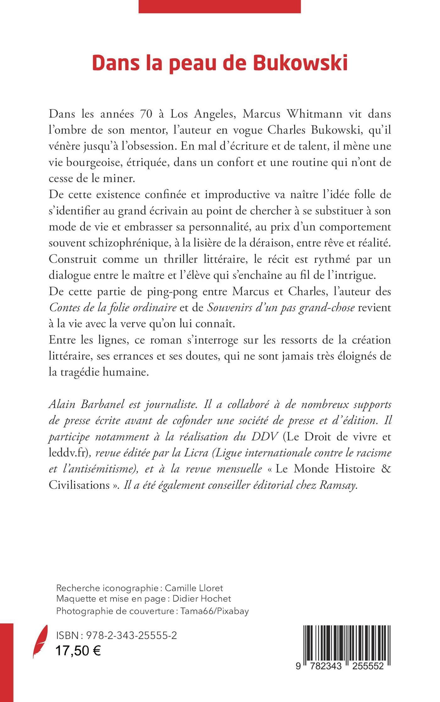 Dans les années 70 à Los Angeles, Marcus Whitmann vit dans l’ombre de son mentor, l’auteur en vogue Charles Bukowski, qu’il vénère jusqu’à l’obsession. En mal d’écriture et de talent, il mène unevie bourgeoise, étriquée, dans un confort et une routine qui n’ont de cesse de le miner. De cette existence confinée et improductive va naître l’idée folle de s’identifier au grand écrivain au point de chercher à se substituer à son mode de vie et embrasser sa personnalité, au prix d’un comportement souvent schizophrénique, à la lisière de la déraison, entre rêve et réalité. Construit comme un thriller littéraire, le récit est rythmé par un dialogue entre le maître et l’élève qui s’enchaîne au fil de l’intrigue. De cette partie de ping-pong entre Marcus et Charles, l’auteur des Contes de la folie ordinaire et de Souvenirs d’un pas grand-chose revient à la vie avec la verve qu’on lui connaît. Entre les lignes, ce roman s’interroge sur les ressorts de la création littéraire, ses errances et ses doutes, qui ne sont jamais très éloignés dela tragédie humaine.
