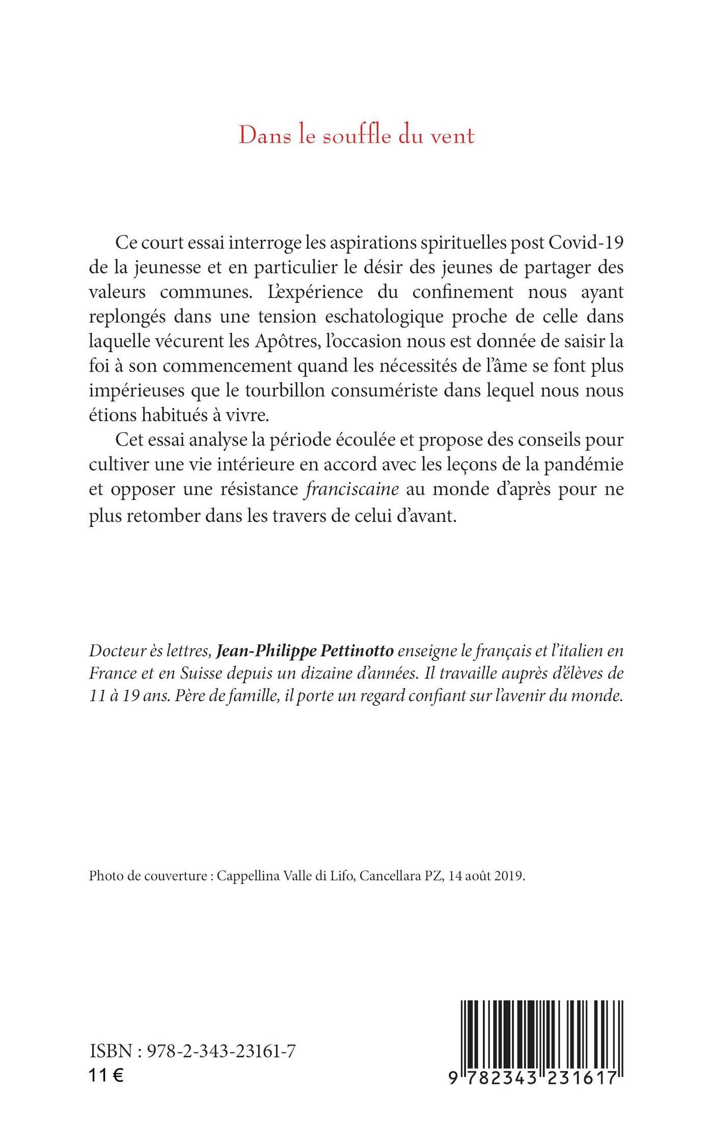 Cet ouvrage interroge les aspirations spirituelles post Covid-19 de la jeunesse et en particulier le désir des jeunes de partager des valeurs communes. L’expérience du confinement nous ayant replongés dans une tension eschatologique proche de celle dans laquelle vécurent les Apôtres, l’occasion nous est donnée de saisir la foi à son commencement quand les nécessités de l’âme se font plus impérieuses que le tourbillon consumériste dans lequel nous nous étions habitués à vivre. Cet essai analyse la période écoulée et propose des conseils pour cultiver une vie intérieure en accord avec les leçons de la pandémie et opposer une résistance franciscaine au monde d’après pour ne plus retomber dans les travers de celui d’avant.