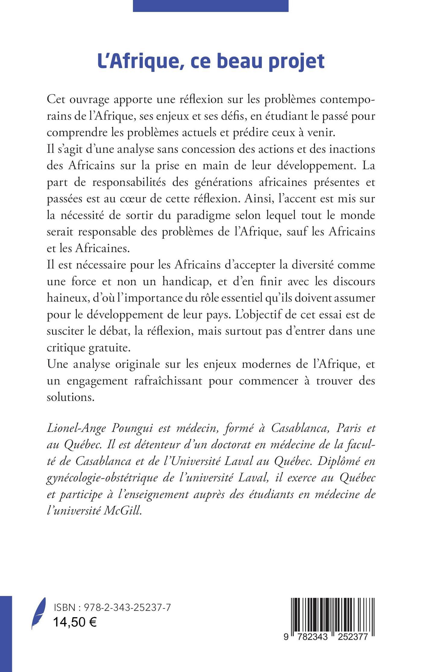 Cet ouvrage apporte une réflexion sur les problèmes contemporains de l’Afrique, ses enjeux et ses défis, en étudiant le passé pour comprendre les problèmes actuels et prédire ceux à venir. Il s’agit d’une analyse sans concession des actions et des inactions des Africains sur la prise en main de leur développement. La part de responsabilités des générations africaines présentes et passées est au cœur de cette réflexion. Ainsi, l’accent est mis sur la nécessité de sortir du paradigme selon lequel tout le monde serait responsable des problèmes de l’Afrique, sauf les Africains et les Africaines. Il est nécessaire pour les Africains d’accepter la diversité comme une force et non un handicap, et d’en finir avec les discours haineux, d’où l’importance du rôle essentiel qu’ils doivent assumer pour le développement de leur pays. L’objectif de cet essai est de susciter le débat, la réflexion, mais surtout pas d’entrer dans une critique gratuite. Une analyse originale sur les enjeux modernes de l’Afrique, et un engagement rafraîchissant pour commencer à trouver des solutions.