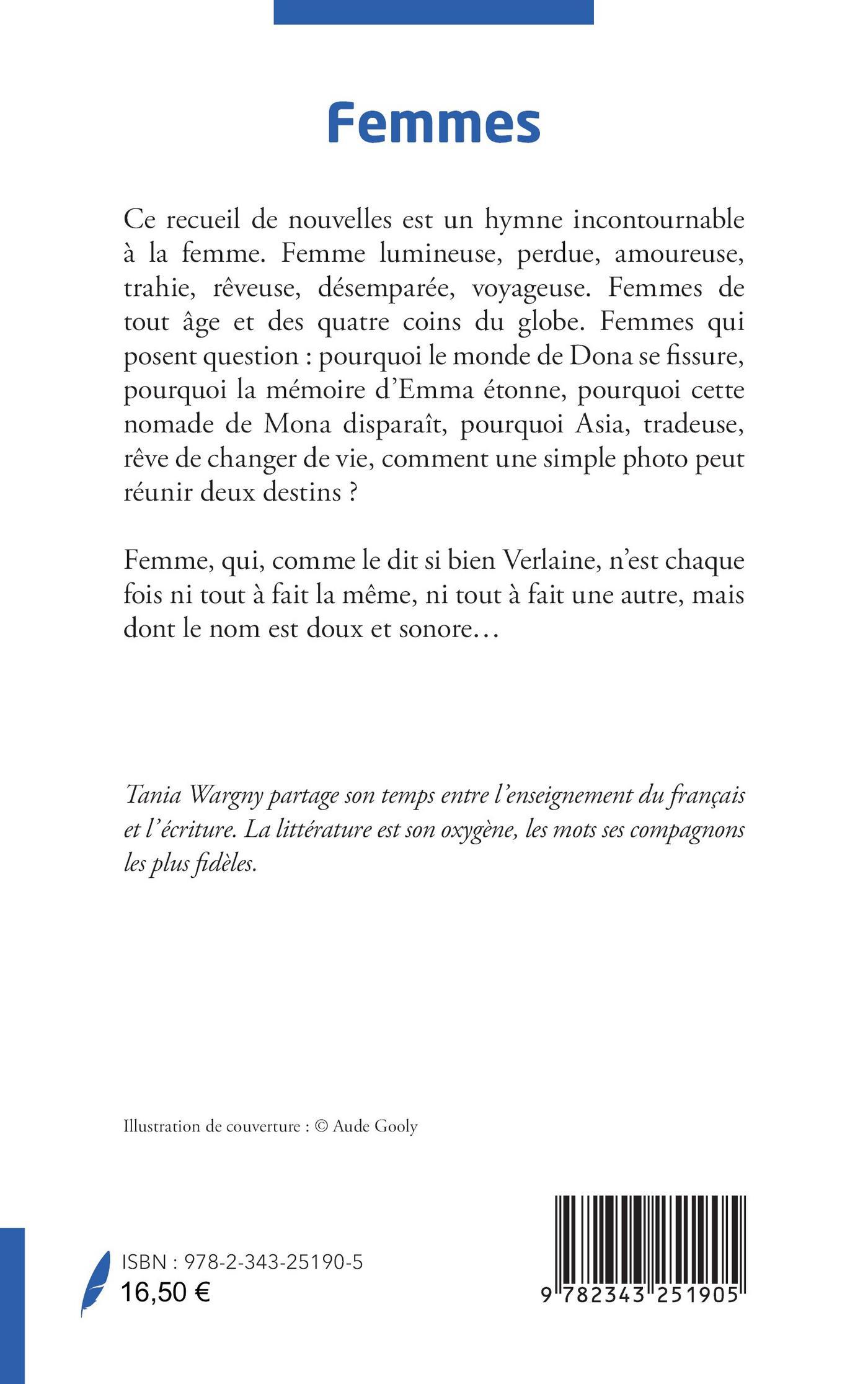 Ce recueil de nouvelles est un hymne incontournable à la femme. Femme lumineuse, perdue, amoureuse, trahie, rêveuse, désemparée, voyageuse. Femmes de tout âge et des quatre coins du globe. Femmes qui posent question : pourquoi le monde de Dona se fissure, pourquoi la mémoire d’Emma étonne, pourquoi cette nomade de Mona disparaît, pourquoi Asia, tradeuse, rêve de changer de vie, comment une simple photo peut réunir deux destins ? Femme, qui, comme le dit si bien Verlaine, n’est chaque fois ni tout à fait la même, ni tout à fait une autre, mais dont le nom est doux et sonore.