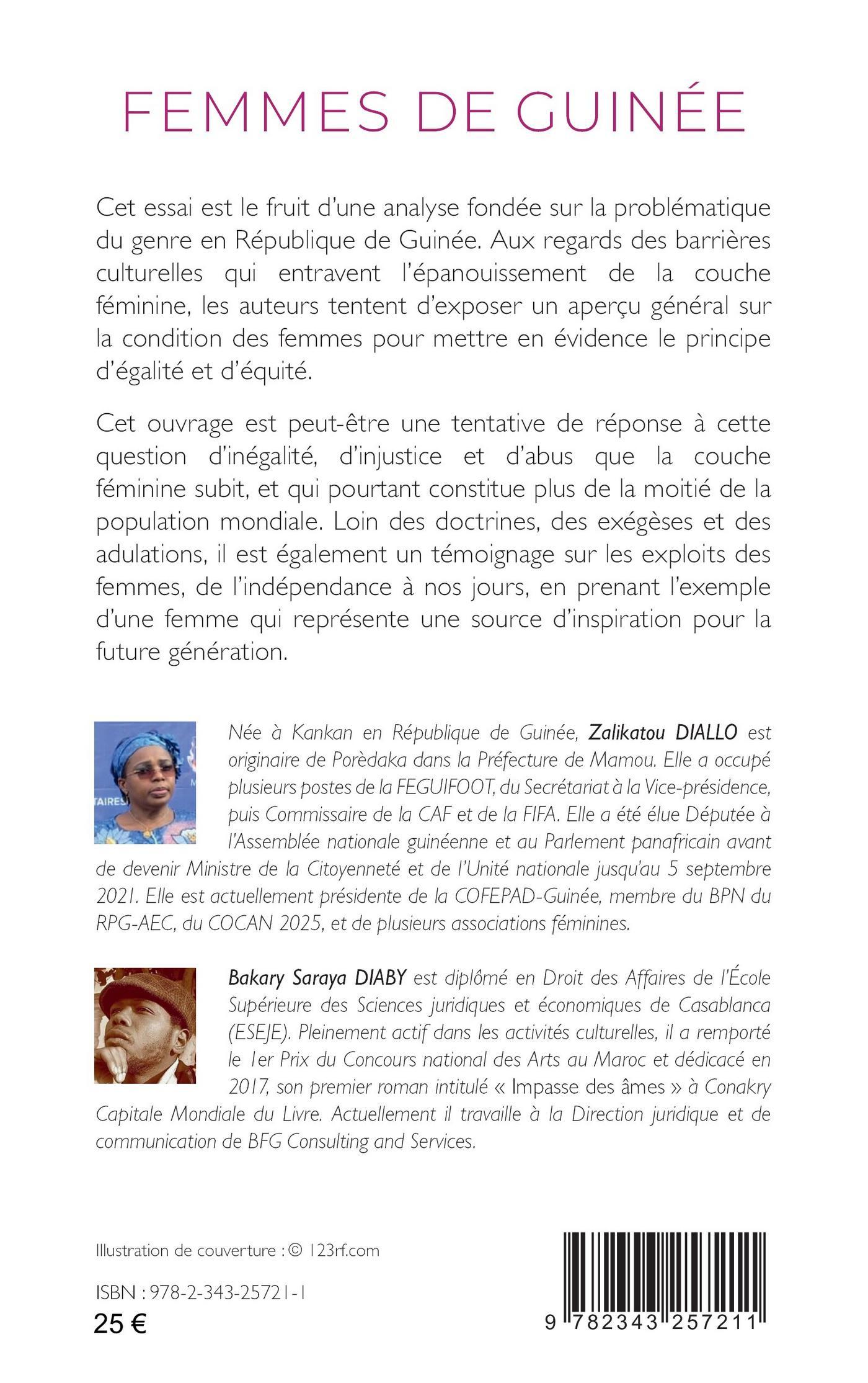 Cet essai est le fruit d’une analyse fondée sur la problématique du genre en République de Guinée. Aux regards des barrières culturelles qui entravent l’épanouissement de la couche féminine, les auteurs tentent d’exposer un aperçu général sur la condition des femmes pour mettre en évidence le principe d’égalité et d’équité. Loin des doctrines, des exégèses et des adulations, il est également un témoignage sur les exploits des femmes, de l’indépendance à nos jours, en prenant l’exemple d’une femme qui représente une source d’inspiration pour la future génération.