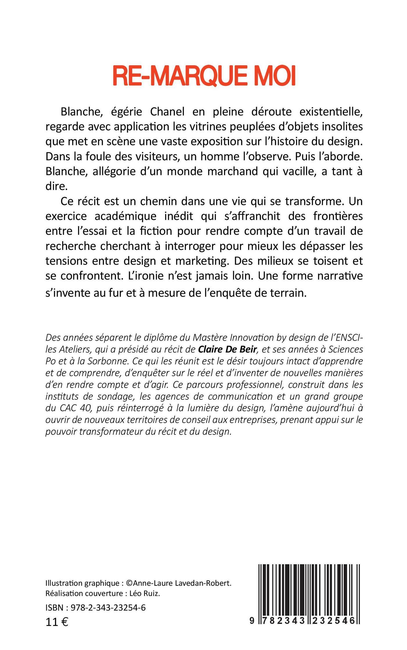 Blanche, égérie Chanel en pleine déroute existentielle, regarde avec application les vitrines peuplées d'objets insolites que met en scène une vaste exposition sur l'histoire du design. Dans la foule des visiteurs, un homme l'observe. Puis l'aborde. Blanche, allégorie d'un monde marchand qui vacille, a tant à dire. Ce récit est un chemin dans une vie qui se transforme. Un exercice académique inédit qui s'affranchit des frontières entre l'essai et la fiction pour rendre compte d'un travail de recherche cherchant à interroger pour mieux les dépasser les tensions entre design et marketing. Des milieux se toisent et se confrontent. L'ironie n'est jamais loin. Une forme narrative s'invente au fur et à mesure de l'enquête de terrain.