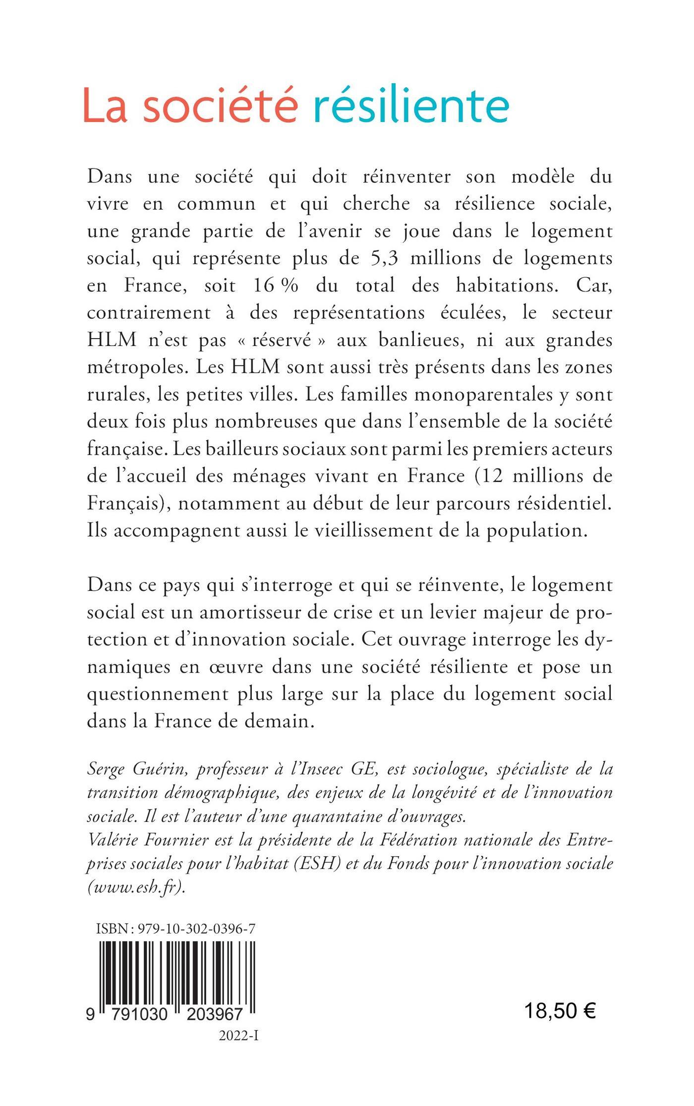 Dans une société qui doit réinventer son modèle du vivre en commun et qui cherche sa résilience sociale, une grande partie de l’avenir se joue dans le logement social, qui représente plus de 5,3 millions de logements en France, soit 16% du total des habitations. Car, contrairement à des représentations éculées, le secteur HLM n’est pas « réservé » aux banlieues, ni aux grandes métropoles. Les HLM sont aussi très présents dans les zones rurales, les petites villes. Les familles monoparentales y sont deux fois plus nombreuses que dans l’ensemble de la société française. Les bailleurs sociaux sont parmi les premiers acteurs de l’accueil des ménages vivant en France (12 millions de Français), notamment au début de leur parcours résidentiel. Ils accompagnent aussi le vieillissement de la population.Dans ce pays qui s’interroge et qui se réinvente, le logement social est un amortisseur de crise et un levier majeur de protection et d’innovation sociale. Cet ouvrage interroge les dynamiques en œuvre dans une société résiliente et pose un questionnement plus large sur la place du logement social dans la France de demain.