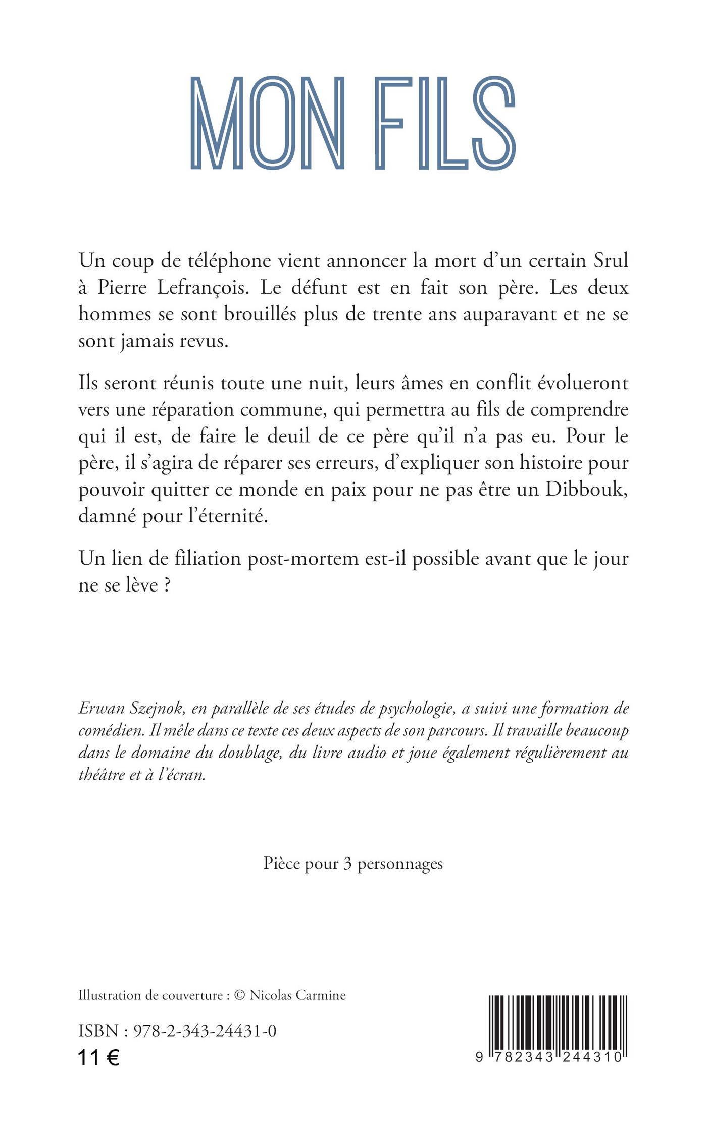 Un coup de téléphone vient annoncer la mort d’un certain Srul à Pierre Lefrançois. Le défunt est en fait son père. Les deux hommes se sont brouillés plus de trente ans auparavant et ne se sont jamais revus. Ils seront réunis toute une nuit, leurs âmes en conflit évolueront vers une réparation commune, qui permettra au fils de comprendre qui il est, de faire le deuil de ce père qu’il n’a pas eu. Pour le père, il s’agira de réparer ses erreurs, d’expliquer son histoire pour pouvoir quitter ce monde en paix pour ne pas être un Dibbouk, damné pour l’éternité. Un lien de filiation post-mortem est-il possible avant que le jour ne se lève ?