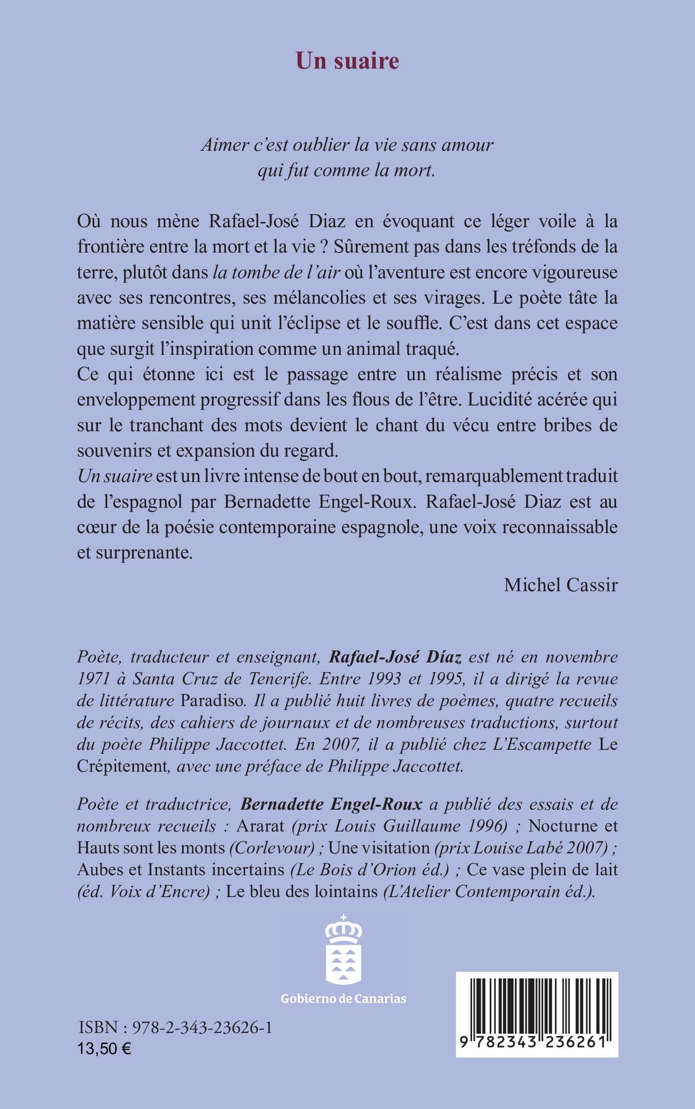 Où nous mène Rafael-José Diaz en évoquant ce léger voile à la frontière entre la mort et la vie ? Sûrement pas dans les tréfonds de la terre, plutôt dans la tombe de l’air où l’aventure est encore vigoureuse avec ses rencontres, ses mélancolies et ses virages. Le poète tâte la matière sensible qui unit l’éclipse et le souffle. C’est dans cet espace que surgit l’inspiration comme un animal traqué. Ce qui étonne ici est le passage entre un réalisme précis et son enveloppement progressif dans les flous de l’être. Lucidité acérée qui sur le tranchant des mots devient le chant du vécu entre bribes de souvenirs et expansion du regard. Un suaire est un livre intense de bout en bout, remarquablement traduit de l’espagnol par Bernadette Engel-Roux. Rafael-José Diaz est au cœur de la poésie contemporaine espagnole, une voix reconnaissable et surprenante. Michel Cassir