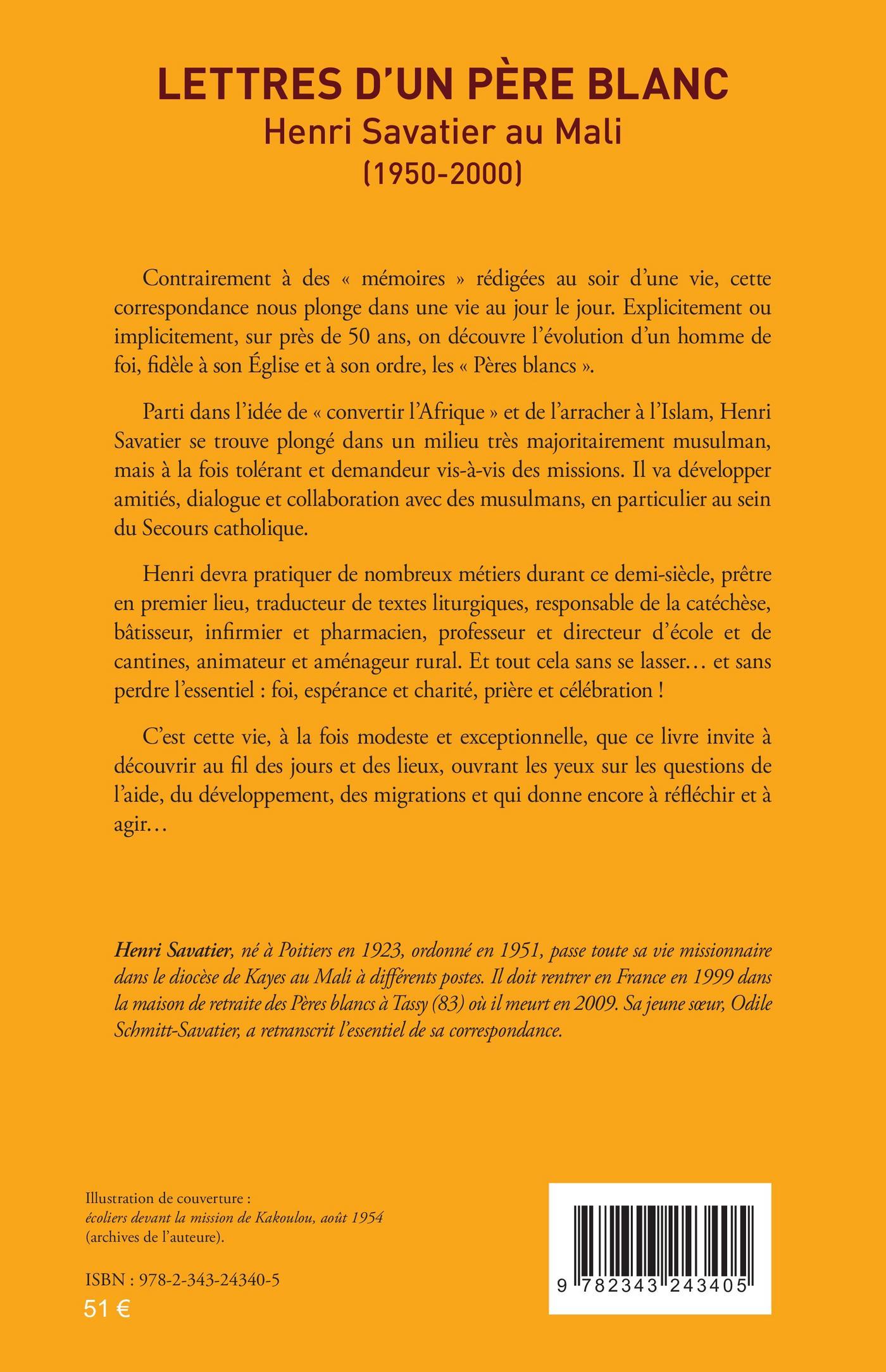 Contrairement à des mémoires rédigées au soir d’une vie, cette correspondance nous plonge dans une vie au jour le jour. Sur près de 50 ans, on découvre l’évolution d’un homme de foi, fidèle à son Église et à son ordre, les « Pères blancs ». Parti dans l’idée de « convertir l’Afrique » et de l’arracher à l’Islam, Henri Savatier se trouve plongé dans un milieu très majoritairement musulman, mais à la fois tolérant et demandeur vis-à-vis des missions. Il va développer amitiés, dialogue et collaboration avec des musulmans, en particulier au sein du Secours catholique. Henri devra pratiquer de nombreux métiers durant ce demi-siècle, prêtre en premier lieu, traducteur de textes liturgiques, responsable de la catéchèse, bâtisseur, infirmier et pharmacien, professeur et directeur d’école et de cantines, animateur et aménageur rural. Et tout cela sans se lasser ni perdre l’essentiel : foi, espérance et charité, prière et célébration. ! C’est cette vie, à la fois modeste et exceptionnelle, que ce livre invite à découvrir.
