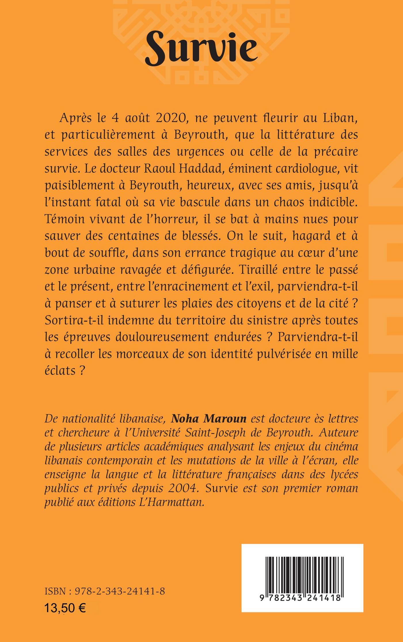Après le 4 août 2020, ne peuvent fleurir au Liban, et particulièrement à Beyrouth, que la littérature des services des salles des urgences ou celle de la précaire survie. Le docteur Raoul Haddad, éminent cardiologue, vit paisiblement à Beyrouth, jusqu’à l’instant fatal où sa vie bascule dans un chaos indicible. Témoin vivant de l’horreur, il se bat à mains nues pour sauver des centaines de blessés. On le suit, hagard et à bout de souffle, dans son errance tragique au coeur d’une zone urbaine ravagée et défigurée. Tiraillé entre le passé et le présent, parviendra-t-il à panser et à suturer les plaies des citoyens et de la cité ? Sortira-t-il indemne du territoire du sinistre après toutes les épreuves douloureusement endurées ?