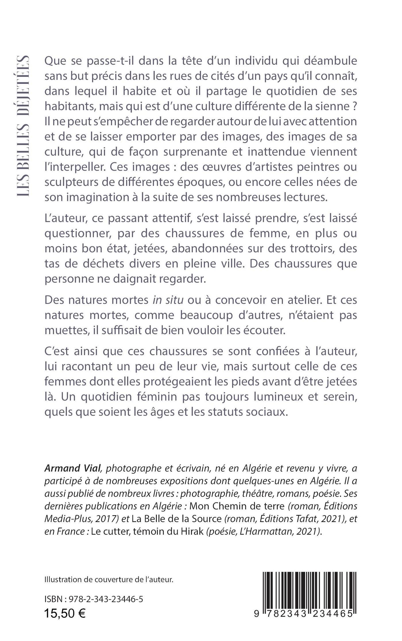 Que se passe-t-il dans la tête d’un individu qui déambule sans but précis dans les rues de cités d’un pays qu’il connaît, dans lequel il habite et où il partage le quotidien de ses habitants, mais qui est d’une culture différente de la sienne ? L’auteur, ce passant attentif, s’est laissé questionner par des chaussures de femme, en plus ou moins bon état, abandonnées sur des trottoirs. Des natures mortes in situ ou à concevoir en atelier. Et ces natures mortes, comme beaucoup d’autres, n’étaient pas muettes. C’est ainsi que ces chaussures se sont confiées à l’auteur, lui racontant un peu de leur vie, mais surtout celle de ces femmes dont elles protégeaient les pieds avant d’être jetées là. Un quotidien féminin pas toujours lumineux et serein, quels que soient les âges et les statuts sociaux.