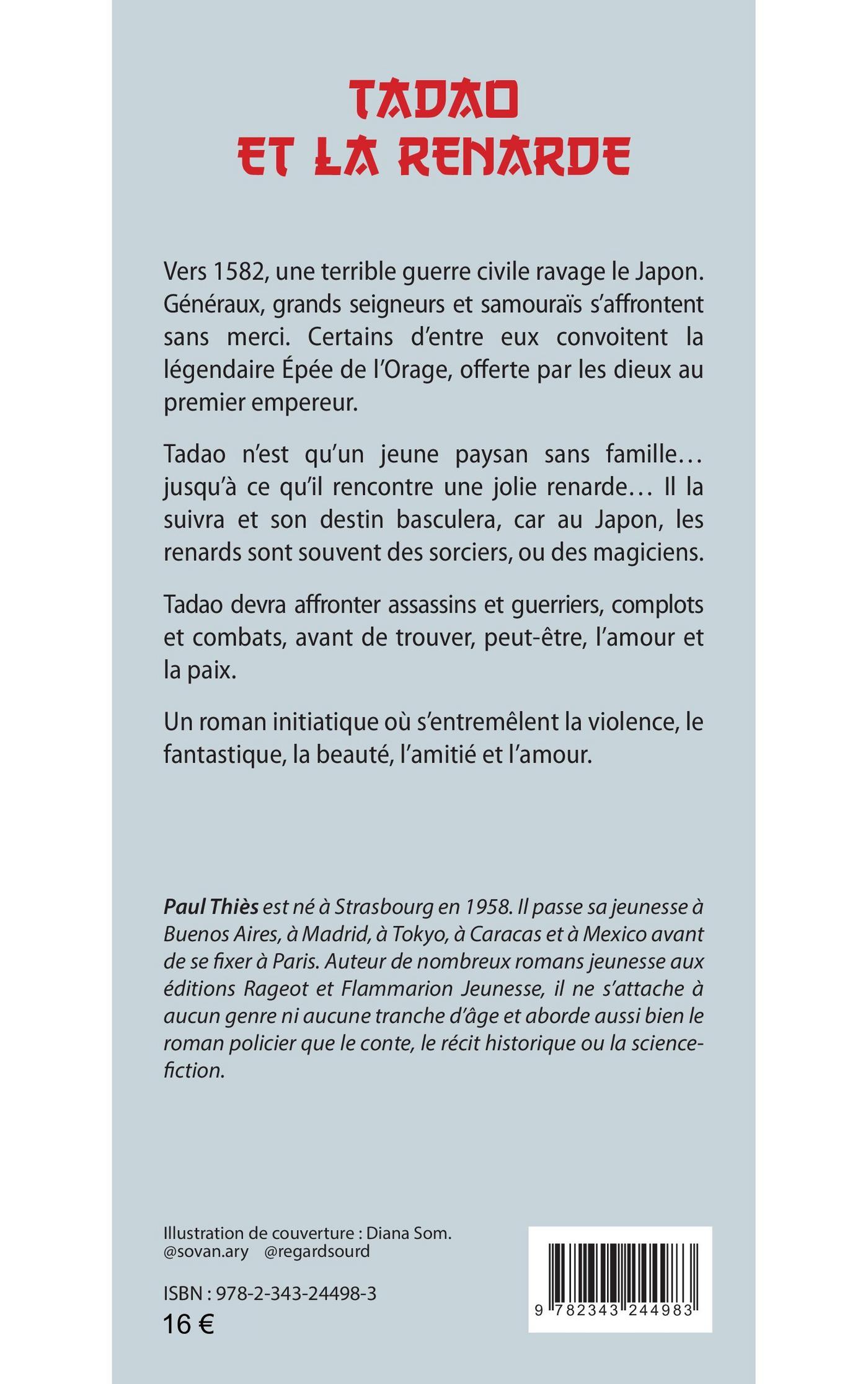 Vers 1582, une terrible guerre civile ravage le Japon. Généraux, grands seigneurs et samouraïs s’affrontent sans merci. Certains d’entre eux convoitent la légendaire Épée de l’Orage, offerte par les dieux au premier empereur.Tadao n’est qu’un jeune paysan sans famille... jusqu’à ce qu’il rencontre une jolie renarde... Il la suivra et son destin basculera, car au Japon, les renards sont souvent des sorciers, ou des magiciens. Tadao devra affronter assassins et guerriers, avant de trouver, peut-être, l’amour et la paix. Un roman initiatique où s’entremêlent la violence, le fantastique, l’amitié et l’amour.