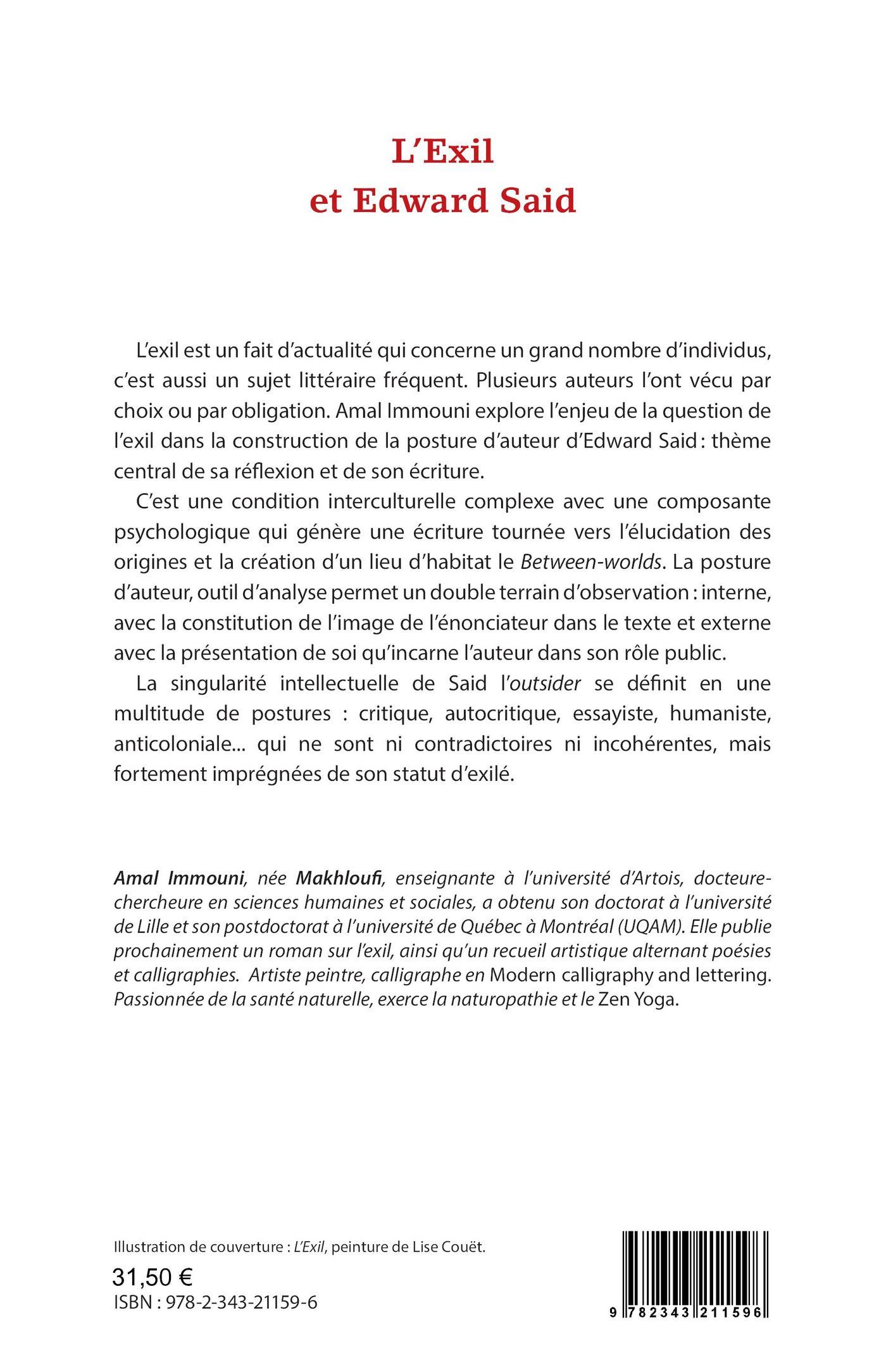 L’exil est un fait d’actualité qui concerne un grand nombre d’individus, c’est aussi un sujet littéraire fréquent. Plusieurs auteurs l’ont vécu par choix ou par obligation. Amal Immouni explore l’enjeu de la question de l’exil dans la construction de la posture d’auteur d’Edward Said : thème central de sa réflexion et de son écriture. C’est une condition interculturelle complexe avec une composante psychologique qui génère une écriture tournée vers l’élucidation des origines et la création d’un lieu d’habitat le Between-worlds. La posture d’auteur, outil d’analyse permet un double terrain d’observation : interne, avec la constitution de l’image de l’énonciateur dans le texte et externe avec la présentation de soi qu’incarne l’auteur dans son rôle public. La singularité intellectuelle de Said l’outsider se définit en une multitude de postures : critique, autocritique, essayiste, humaniste, anticoloniale... qui ne sont ni contradictoires ni incohérentes, mais fortement imprégnées de son statut d’exilé.