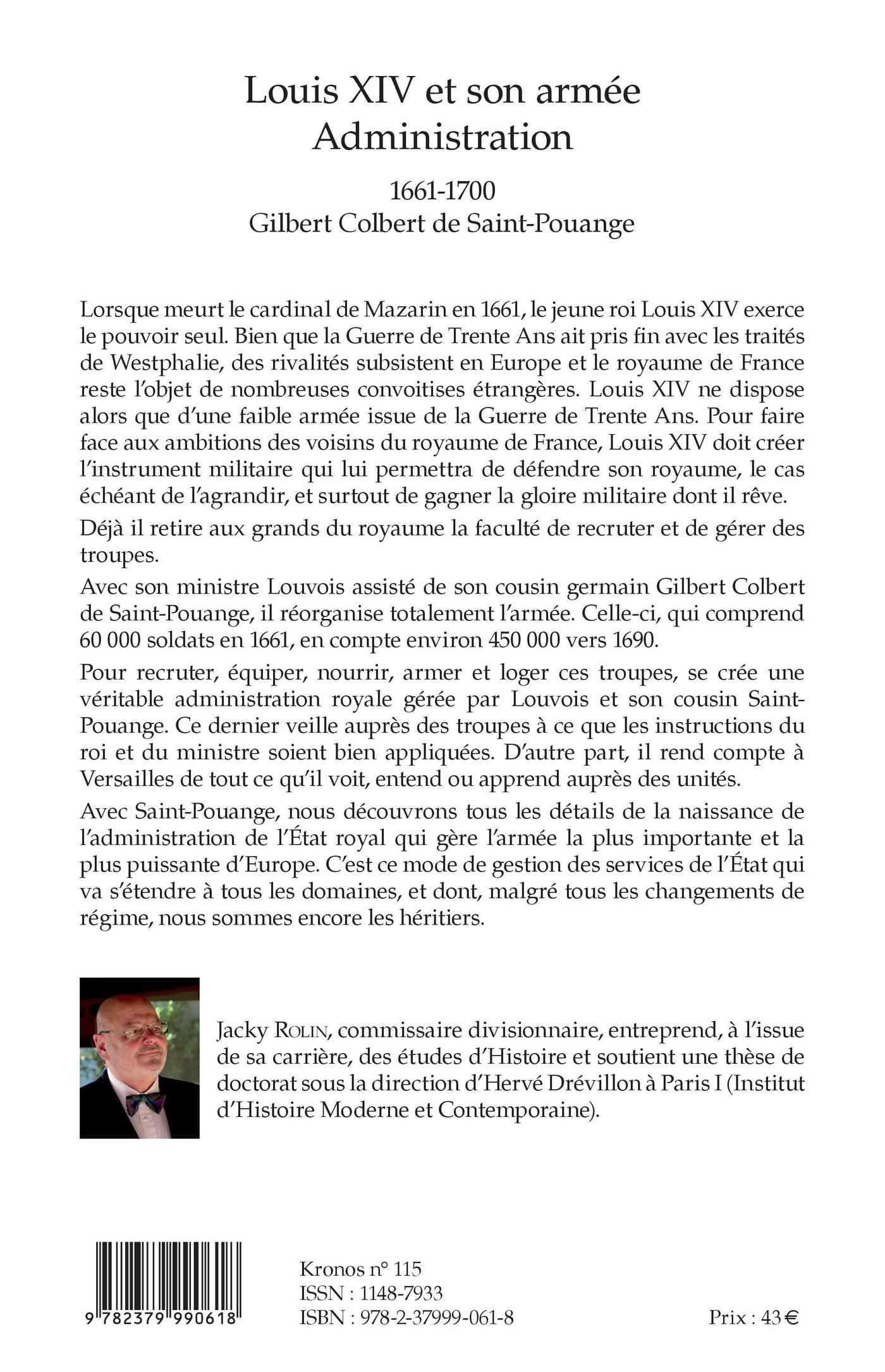 Bien que la Guerre de Trente Ans ait pris fin, des rivalités subsistent en Europe et le royaume de France reste l'objet de nombreuses convoitises étrangères. Pour faire face aux ambitions des voisins du royaume de France, Louis XIV doit créer l'instrument militaire qui lui permettra de défendre son royaume et surtout de gagner la gloire militaire dont il rêve. Avec son ministre Louvois assisté de son cousin germain Gilbert Colbert de Saint-Pouange, il réorganise totalement l'armée. Pour recruter, équiper, armer et loger ces troupes, se crée une véritable administration royale gérée par Louvois et Saint-Pouange. Nous découvrons tous les détails de la naissance de l'administration de l'État royal qui gère l'armée la plus importante et la plus puissante d'Europe. C'est ce mode de gestion des services de l'Etat qui va s'étendre à tous les domaines, et dont, malgré tous les changements de régime, nous sommes encore les héritiers.