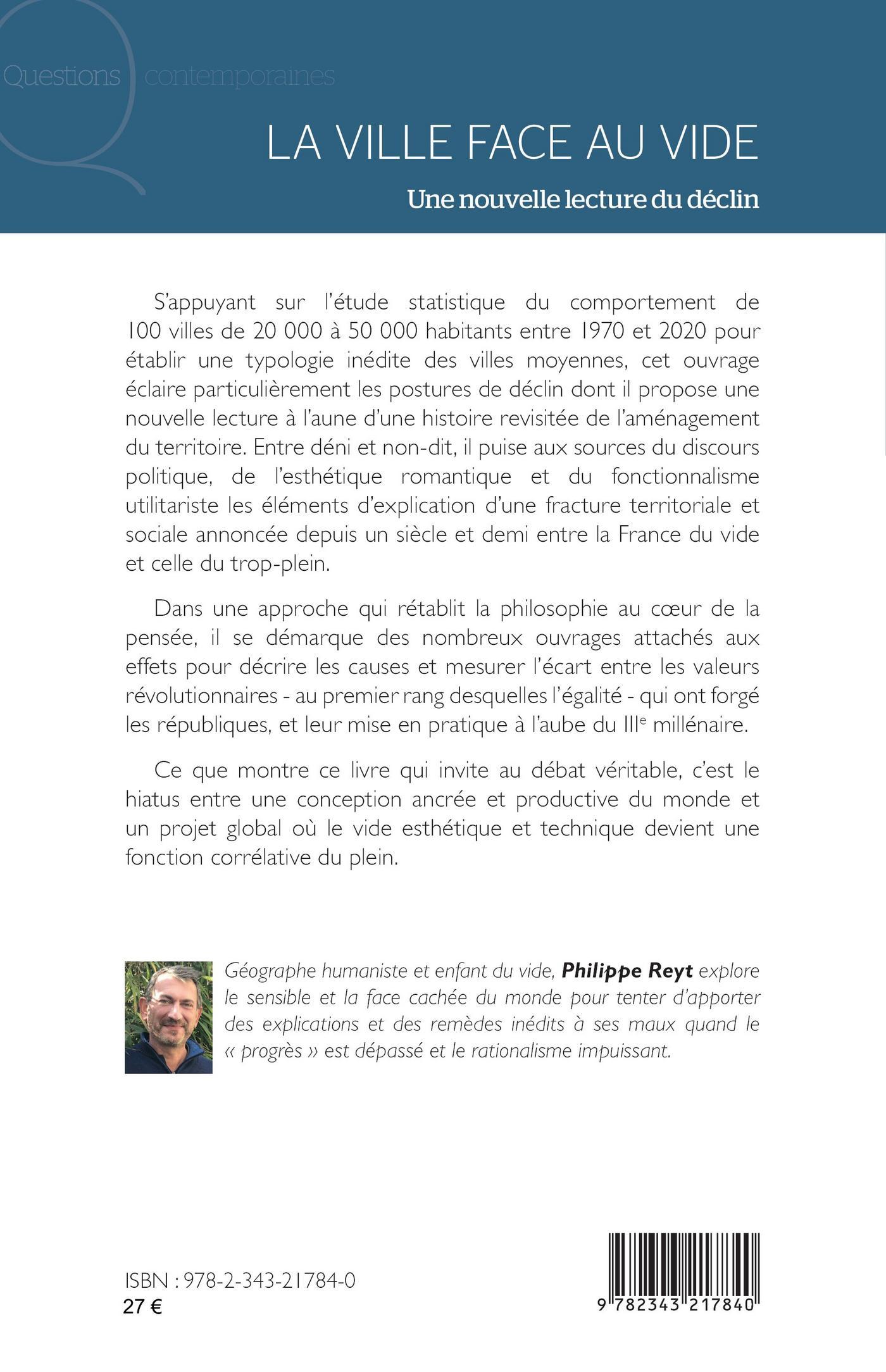S’appuyant sur l’étude statistique du comportement de 100 villes de 20 000 à 50 000 habitants entre 1970 et 2020 pour établir une typologie inédite des villes moyennes, cet ouvrage éclaire particulièrement les postures de déclin dont il propose une nouvelle lecture à l’aune d’une histoire revisitée de l’aménagement du territoire. Entre déni et non-dit, il puise aux sources du discours politique, de l’esthétique romantique et du fonctionnalisme utilitariste les éléments d’explication d’une fracture territoriale et sociale annoncée depuis un siècle et demi entre la France du vide et celle du trop-plein. Dans une approche qui rétablit la philosophie au cour de la pensée, il se démarque des nombreux ouvrages attachés aux effets pour décrire les causes et mesurer l’écart entre les valeurs révolutionnaires qui ont forgé les républiques, et leur mise en pratique à l’aube du IIIe millénaire. Ce que montre ce livre qui invite au débat véritable, c’est le hiatus entre une conception ancrée et productive du monde et un projet global où le vide esthétique et technique devient une fonction corrélative du plein.
