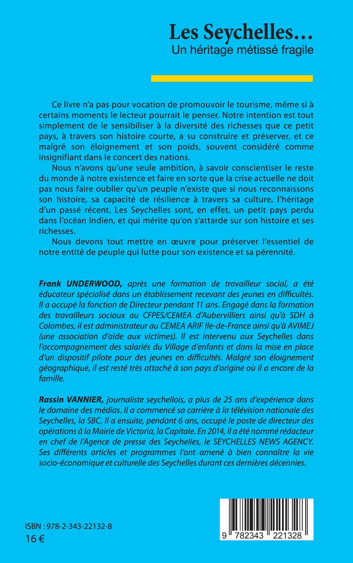 Ce livre n’a pas pour vocation de promouvoir le tourisme, même si à certains moments le lecteur pourrait le penser. Notre intention est tout simplement de le sensibiliser à la diversité des richesses que ce petit pays, à travers son histoire courte, a su construire et préserver, et ce malgré son éloignement et son poids, souvent considéré comme insignifiant dans le concert des nations. Nous n’avons qu’une seule ambition, à savoir conscientiser le reste du monde à notre existence et faire en sorte que la crise actuelle ne doit pas nous faire oublier qu’un peuple n’existe que si nous reconnaissons son histoire, sa capacité de résilience à travers sa culture, l’héritage d’un passé récent. Les Seychelles sont, en effet, un petit pays perdu dans l’océan Indien, et qui mérite qu’on s’attarde sur son histoire et ses richesses. Nous devons tout mettre en oeuvre pour préserver l’essentiel de notre entité de peuple qui lutte pour son existence et sa pérennité.