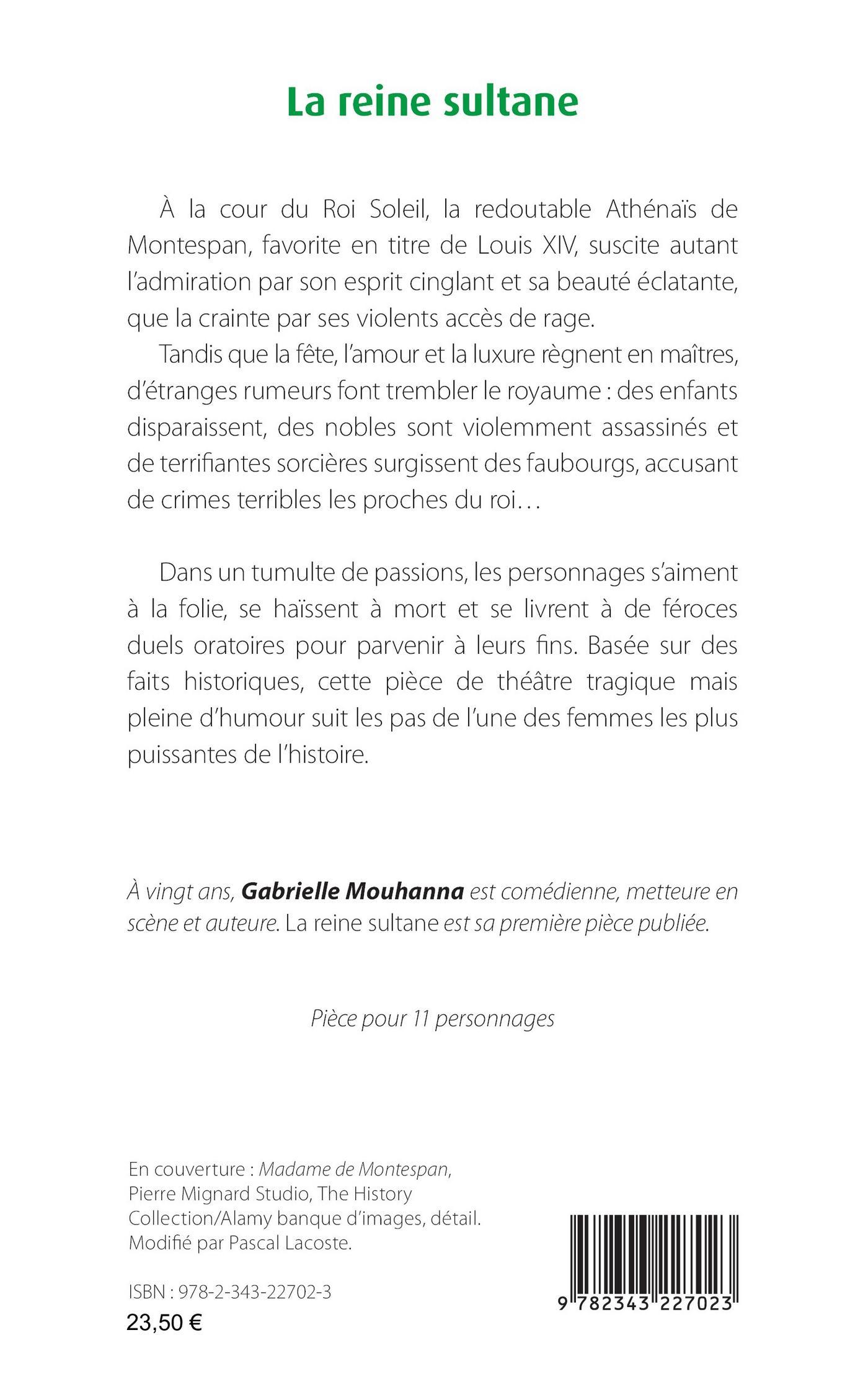 À la cour du Roi Soleil, la redoutable Athénaïs de Montespan, favorite en titre de Louis XIV, suscite autant l’admiration par son esprit cinglant et sa beauté éclatante, que la crainte par ses violents accès de rage. Tandis que la fête, l’amour et la luxure règnent en maîtres, d’étranges rumeurs font trembler le royaume : des enfants disparaissent, des nobles sont violemment assassinés et de terrifiantes sorcières surgissent des faubourgs, accusant de crimes terribles les proches du roi... Dans un tumulte de passions, les personnages s’aiment à la folie, se haïssent à mort et se livrent à de féroces duels oratoires pour parvenir à leurs fi ns. Basée sur des faits historiques, cette pièce de théâtre tragique mais pleine d’humour suit les pas de l’une des femmes les plus puissantes de l’histoire.