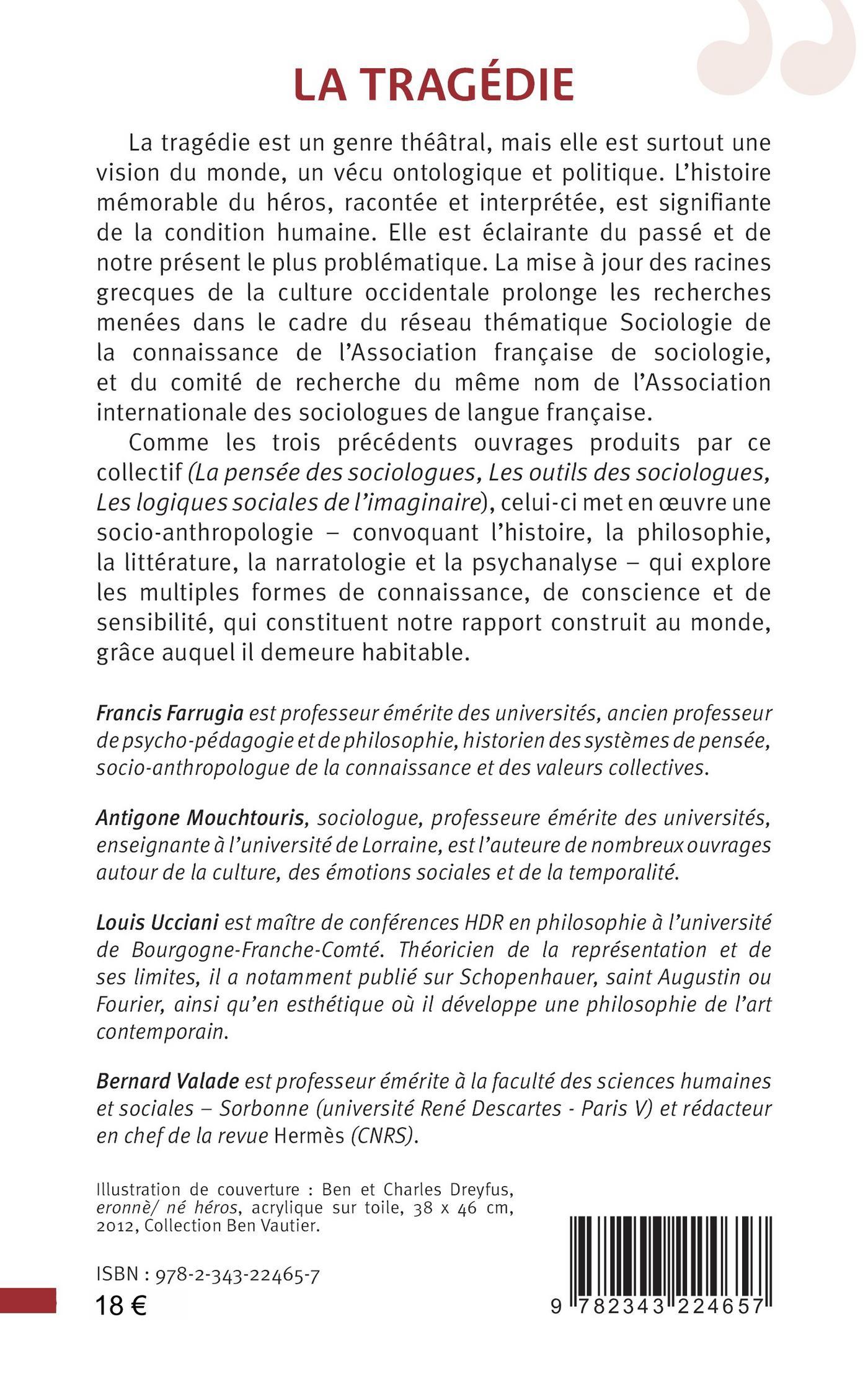 La tragédie est un genre théâtral, mais elle est surtout une vision du monde, un vécu ontologique et politique. L’histoire mémorable du héros, racontée et interprétée, est signifiante de la condition humaine. Elle est éclairante du passé et de notre présent le plus problématique. La mise à jour des racines grecques de la culture occidentale prolonge les recherches menées dans le cadre du réseau thématique Sociologie de la connaissance de l’Association française de sociologie, et du comité de recherche du même nom de l’Association internationale des sociologues de langue française. Comme les trois précédents ouvrages produits par ce collectif, celui-ci met en oeuvre une socio-anthropologie - convoquant l’histoire, la philosophie, la littérature, la narratologie et la psychanalyse - qui explore les multiples formes de connaissance, de conscience et de sensibilité, qui constituent notre rapport construit au monde, grâce auquel il demeure habitable.