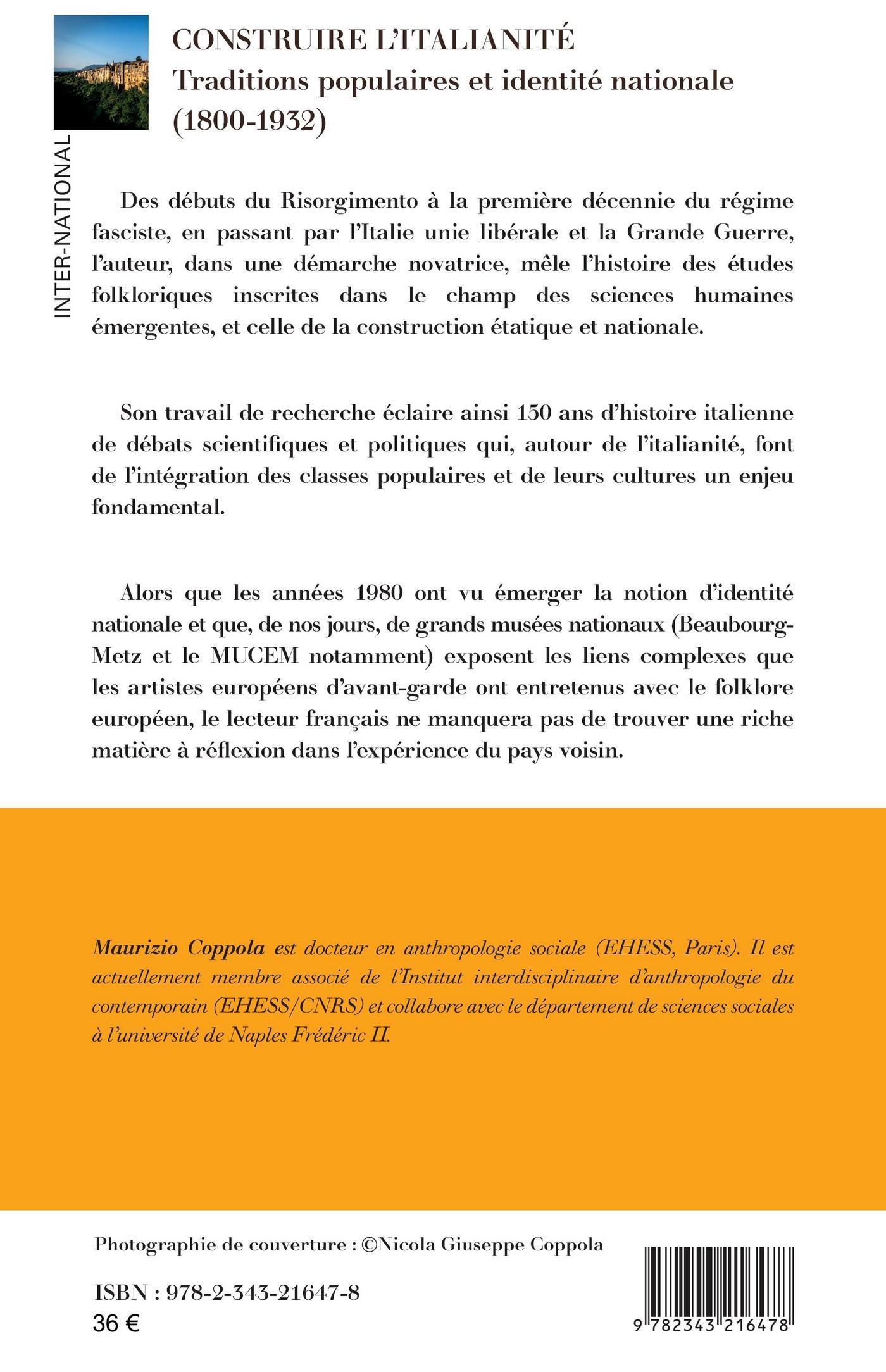Des débuts du Risorgimento à la première décennie du régime fasciste, en passant par l’Italie unie libérale et la Grande Guerre, l’auteur, dans une démarche novatrice, mêle l’histoire des études folkloriques inscrites dans le champ des sciences humaines émergentes, et celle de la construction étatique et nationale. Son travail de recherche éclaire ainsi 150 ans d’histoire italienne de débats scientifiques et politiques qui, autour de l’italianité, font de l’intégration des classes populaires et de leurs cultures un enjeu fondamental. Alors que les années 1980 ont vu émerger la notion d’identité nationale et que, de nos jours, de grands musées nationaux (Beaubourg-Metz et le MUCEM notamment) exposent les liens complexes que les artistes européens d’avant-garde ont entretenus avec le folklore européen, le lecteur français ne manquera pas de trouver une riche matière à réflexion dans l’expérience du pays voisin.