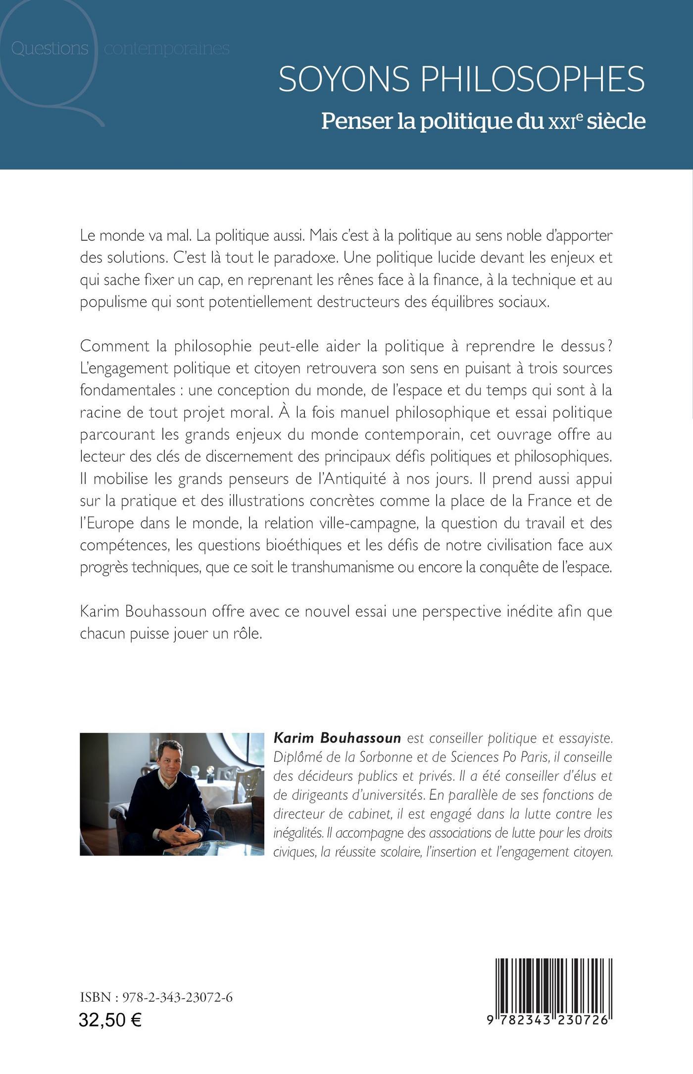 Le monde va mal. La politique aussi. Mais c’est à la politique au sens noble d’apporter des solutions. C’est là tout le paradoxe. Comment une politique lucide peut-elle reprendre les rênes face à la finance, à la technique et au populisme potentiellement destructeurs des équilibres sociaux ? L’engagement retrouvera son sens en puisant dans une conception du monde, de l’espace et du temps. À la fois manuel philosophique et essai politique parcourant les grands enjeux du monde contemporain, cet ouvrage offre au lecteur des clés de discernement des principaux défis politiques et philosophiques. Il mobilise les grands penseurs de l’Antiquité à nos jours. Il prend aussi appui sur la pratique et des illustrations concrètes comme la place de la France et de l’Europe dans le monde, la relation ville-campagne, la question du travail et des compétences, les questions bioéthiques et les défis de notre civilisation face aux progrès techniques.