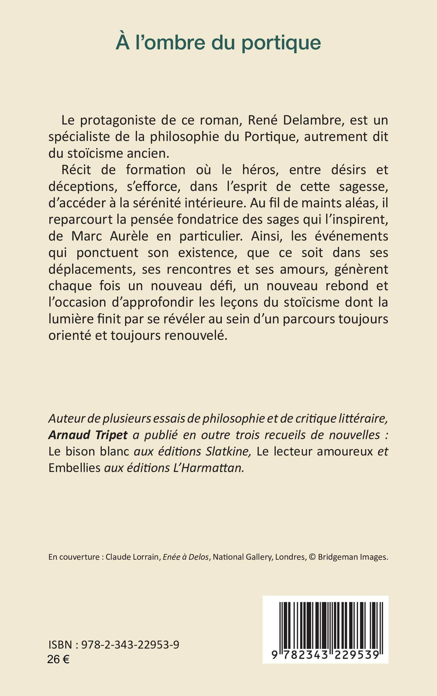 Le protagoniste de ce roman, René Delambre, est un spécialiste de la philosophie du Portique, autrement dit du stoïcisme ancien. Récit de formation où le héros, entre désirs et déceptions, s’efforce, dans l’esprit de cette sagesse, d’accéder à la sérénité intérieure. Au fil de maints aléas, il reparcourt la pensée fondatrice des sages qui l’inspirent, de Marc Aurèle en particulier. Ainsi, les événements qui ponctuent son existence, que ce soit dans ses déplacements, ses rencontres et ses amours, génèrent chaque fois un nouveau défi, un nouveau rebond et l’occasion d’approfondir les leçons du stoïcisme dont la lumière finit par se révéler au sein d’un parcours toujours orienté et toujours renouvelé