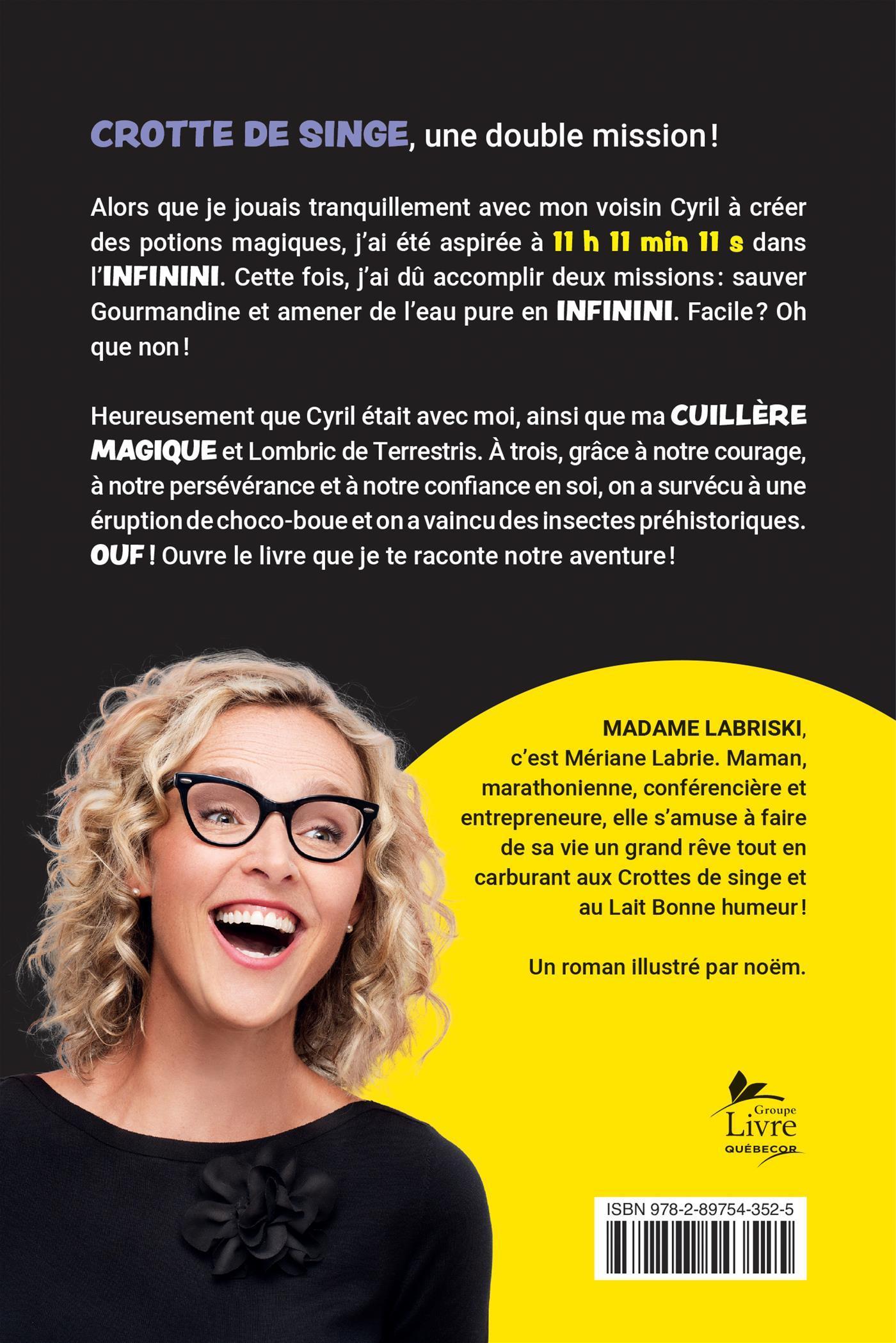 Alors que je jouais tranquillement avec mon voisin Cyril à créer des potions magiques, j'ai été aspirée à 11 h 11 min 11 s dans l'Infinini. Cette fois, j'ai dû accomplir deux missions: sauver Gourmandine et amener de l'eau pure en Infinini. Facile? Oh que non!