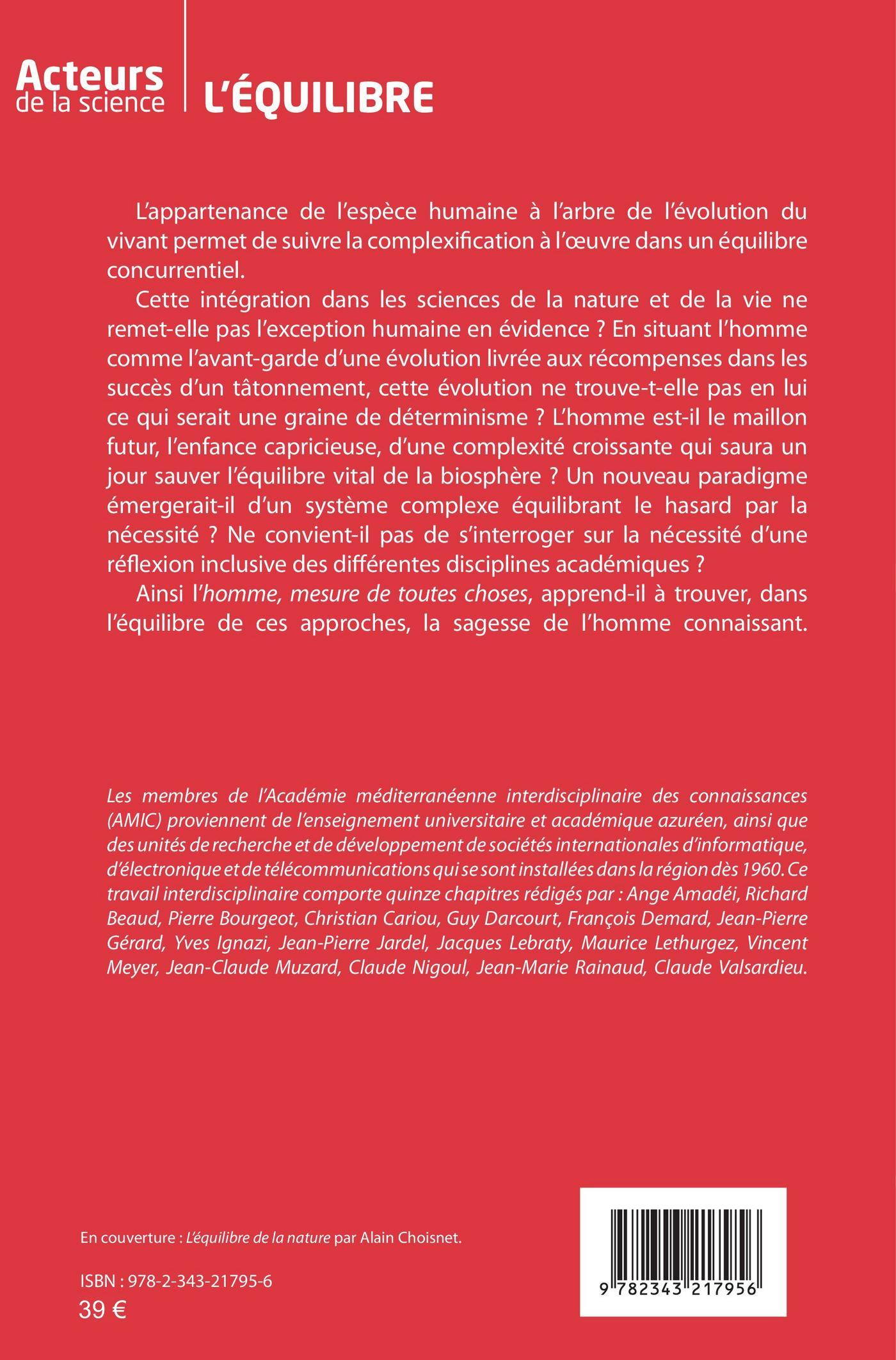 L’appartenance de l’espèce humaine à l’arbre de l’évolution du vivant permet de suivre la complexification à l’oeuvre dans un équilibre concurrentiel. Cette intégration dans les sciences de la nature et de la vie ne met-elle pas à nouveau l’exception humaine en évidence ? En situant l’homme comme l’avant-garde d’une évolution livrée aux récompenses dans les succès d’un tâtonnement, cette évolution ne trouve-t-elle pas en lui une graine de déterminisme ? L’homme est-il le maillon futur, l’enfance capricieuse, d’une complexité croissante qui saura un jour sauver l’équilibre vital de la biosphère ? Un nouveau paradigme émergerait-il d’un système complexe équilibrant le hasard par la nécessité ? Ne convient-il pas de s’interroger sur la nécessité d’une réflexion inclusive des différentes disciplines académiques ? Ainsi l’homme apprend-il à trouver une forme de sagesse.