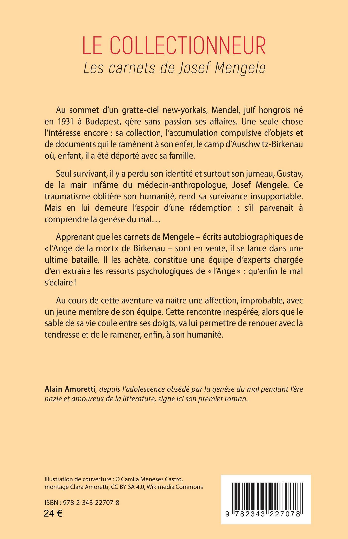 Au sommet d’un gratte-ciel new-yorkais, Mendel, juif hongrois né en 1931 à Budapest, gère sans passion ses affaires. Une seule chose l’intéresse encore : sa collection, l’accumulation compulsive d’objets et de documents qui le ramènent à son enfer, le camp d’Auschwitz-Birkenau où, enfant, il a été déporté avec sa famille. Seul survivant, il y a perdu son identité et surtout son jumeau, Gustav, de la main infâme du médecin-anthropologue, Josef Mengele. Ce traumatisme oblitère son humanité, rend sa survivance insupportable. Mais en lui demeure l’espoir d’une rédemption : s’il parvenait à comprendre la genèse du mal... Apprenant que les carnets de Mengele - écrits autobiographiques de « l’Ange de la mort » de Birkenau - sont en vente, il se lance dans une ultime bataille. Il les achète, constitue une équipe d’experts chargée d’en extraire les ressorts psychologiques de « l’Ange » : qu’enfin le mal s’éclaire ! Au cours de cette aventure va naître une affection, improbable, avec un jeune membre de son équipe. Cette rencontre inespérée, alors que le sable de sa vie coule entre ses doigts, va lui permettre de renouer avec la tendresse et de le ramener, enfin, à son humanité.