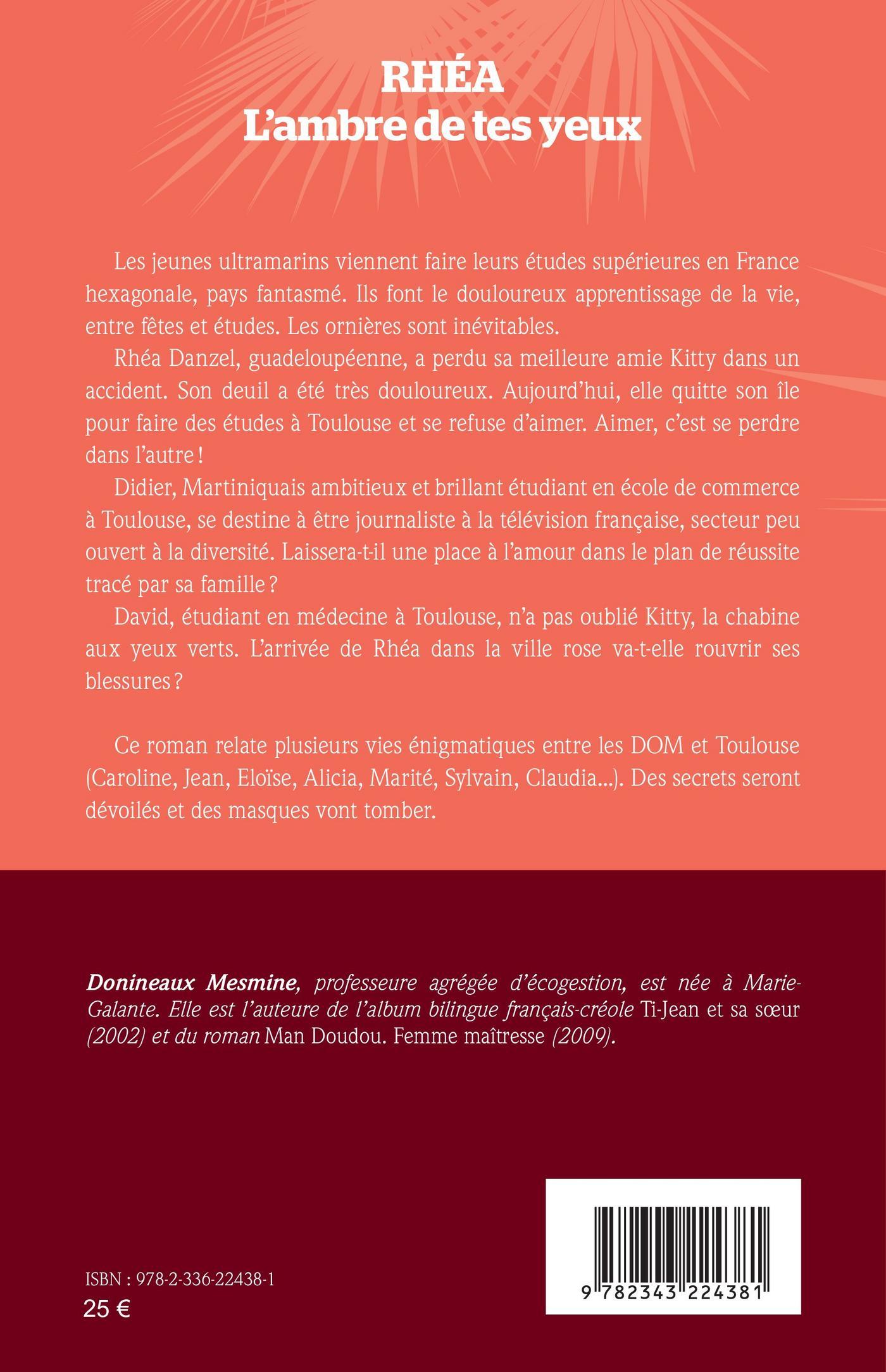 Les jeunes ultramarins viennent faire leurs études supérieures en France hexagonale, pays fantasmé. Ils font le douloureux apprentissage de la vie, entre fêtes et études. Les ornières sont inévitables.Rhéa Danzel, guadeloupéenne, a perdu sa meilleure amie Kitty dans un accident. Son deuil a été très douloureux. Aujourd’hui, elle quitte son île pour faire des études à Toulouse et se refuse d’aimer. Aimer, c’est se perdre dans l’autre !Didier, Martiniquais ambitieux et brillant étudiant en école de commerce à Toulouse, se destine à être journaliste à la télévision française, secteur peu ouvert à la diversité. Laissera-t-il une place à l’amour dans le plan de réussite tracé par sa famille ? David, étudiant en médecine à Toulouse, n’a pas oublié Kitty, la chabine aux yeux verts. L’arrivée de Rhéa dans la ville rose va-t-elle rouvrir ses blessures ? Ce roman relate plusieurs vies énigmatiques entre les DOM et Toulouse (Caroline, Jean, Eloïse, Alicia, Marité, Sylvain, Claudia...). Des secrets seront dévoilés et des masques vont tomber.