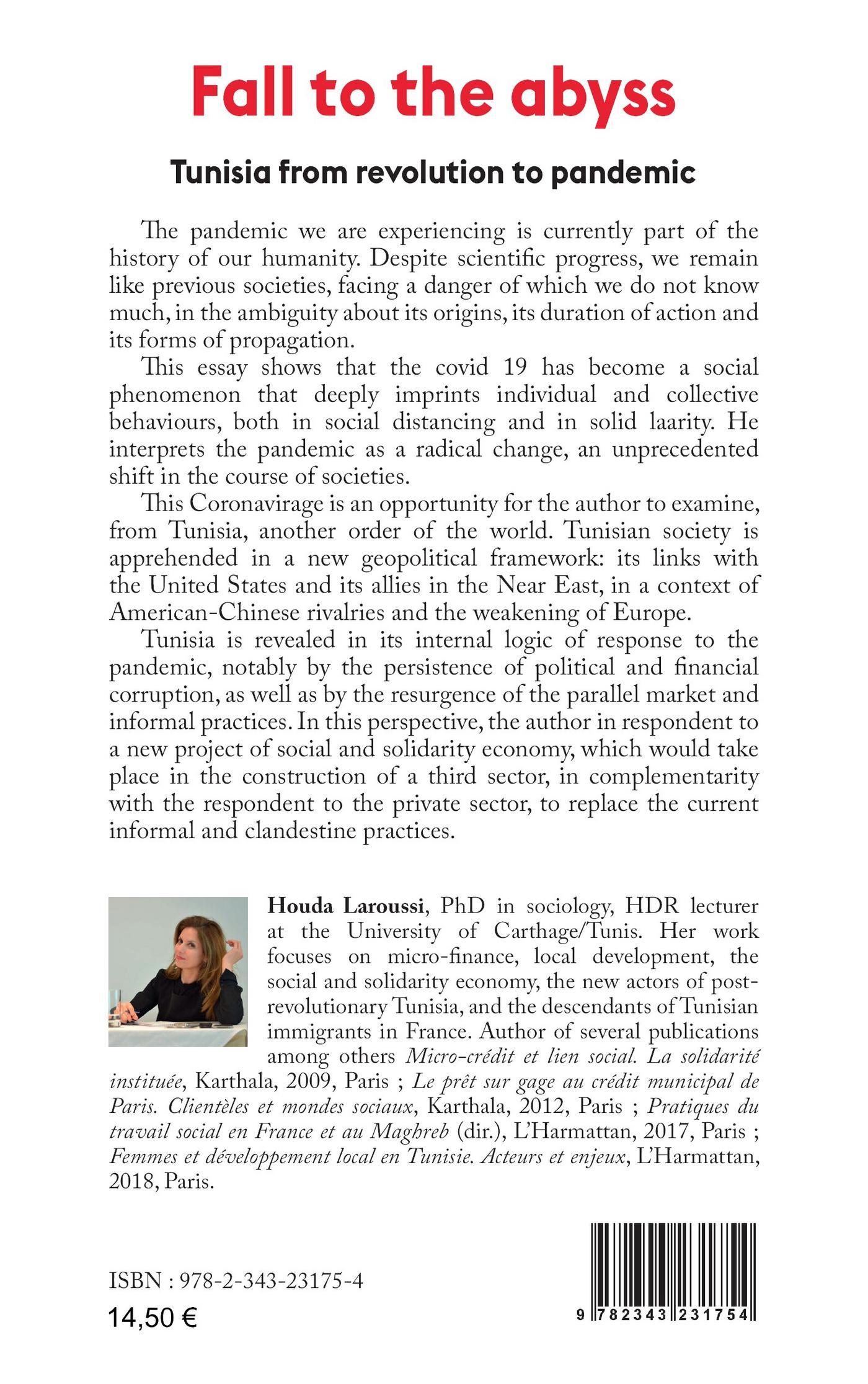 This essay shows that the covid 19 has become a social phenomenon that deeply imprints individual and collective behaviours, both in social distancing and in solid laarity. He interprets the pandemic as a radical change, an unprecedented shift in the course of societies. This Coronavirage is an opportunity for the author to examine, from Tunisia, another order of the world.Tunisian society is apprehended in a new geopolitical framework : its links with the United States and its allies in the Near East, in a context of American-Chinese rivalries and the weakening of Europe. Tunisia is revealed in its internal logic of response to the pandemic, notably by the persistence of political and financial corruption, as well as by the resurgence of the parallel market and informal practices. In this perspective, the author in respondent to a new project of social and solidarity economy, which would take place in the construction of a third sector, in complementarity with the respondent to the private sector, to replace the current informal and clandestine practices.