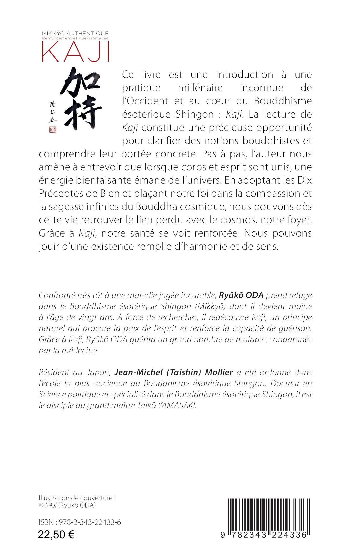 Ce livre est une introduction à une pratique millénaire inconnue de l’Occident et au cœur du Bouddhisme ésotérique Shingon : Kaji. La lecture de Kaji constitue une précieuse opportunité pour clarifier des notions bouddhistes et comprendre leur portée concrète. Pas à pas, l’auteur nous amène à entrevoir que lorsque corps et esprit sont unis, une énergie bienfaisante émane de l’univers. En adoptant les Dix Préceptes de Bien et plaçant notre foi dans la compassion et la sagesse infinies du Bouddha cosmique, nous pouvons dès cette vie retrouver le lien perdu avec le cosmos, notre foyer. Grâce à Kaji, notre santé se voit renforcée. Nous pouvons jouir d’une existence remplie d’harmonie et de sens.