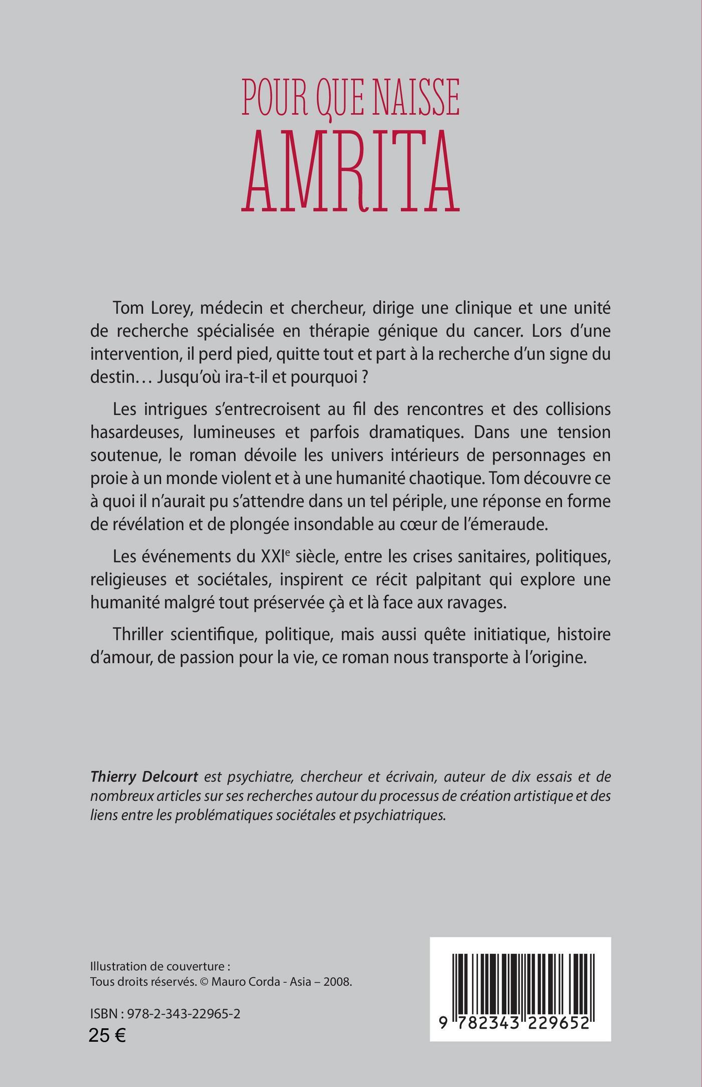 Tom Lorey, médecin et chercheur, dirige une clinique et une unité de recherche spécialisée en thérapie génique du cancer. Lors d’une intervention, il perd pied, quitte tout et part à la recherche d’un signe du destin... Jusqu’où ira-t-il et pourquoi ? Les intrigues s’entrecroisent au fil des rencontres et des collisions hasardeuses, lumineuses et parfois dramatiques. Dans une tension soutenue, le roman dévoile les univers intérieurs de personnages en proie à un monde violent et à une humanité chaotique. Tom découvre ce à quoi il n’aurait pu s’attendre dans un tel périple, une réponse en forme de révélation et de plongée insondable au cœur de l’émeraude.