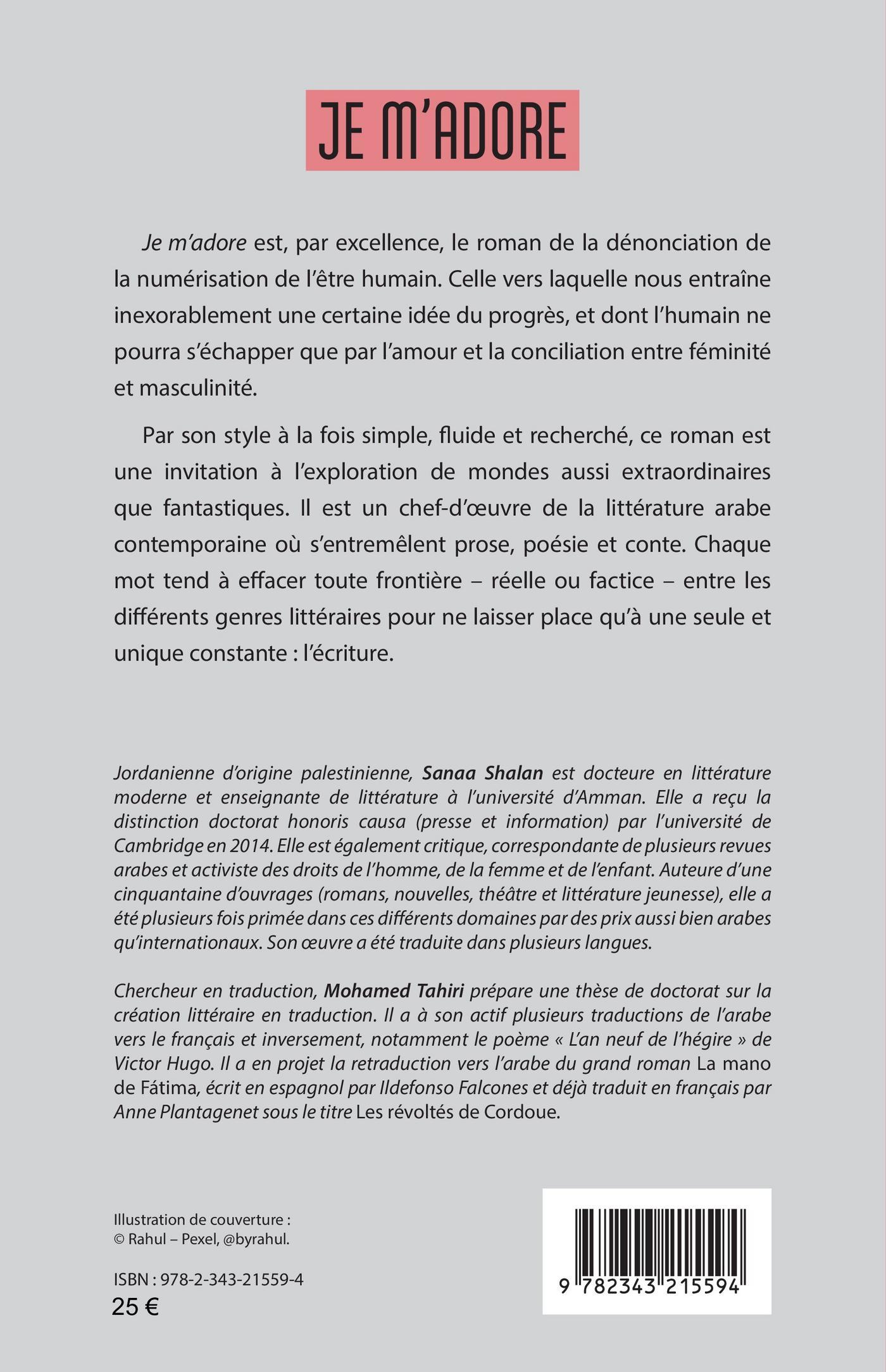 Je m’adore est, par excellence, le roman de la dénonciation de la numérisation de l’être humain. Celle vers laquelle nous entraîne inexorablement une certaine idée du progrès, et dont l’humain ne pourra s’échapper que par l’amour et la conciliation entre féminité et masculinité. Par son style à la fois simple, fluide et recherché, ce roman est une invitation à l’exploration de mondes aussi extraordinaires que fantastiques. Il est un chef-d’oeuvre de la littérature arabe contemporaine où s’entremêlent prose, poésie et conte. Chaque mot tend à effacer la frontière entre les différents genres littéraires pour ne laisser place qu’à une seule et unique constante : l’écriture.