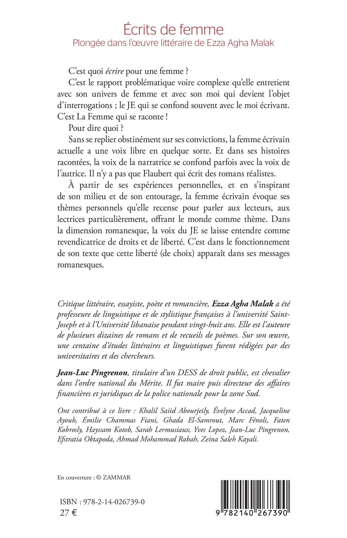 C'est quoi écrire pour une femme ? C'est le rapport problématique voire complexe qu'elle entretient avec son univers de femme et avec son moi qui devient l'objet d'interrogations ; le JE qui se confond souvent avec le moi écrivant. C'est La Femme qui se raconte ! Pour dire quoi ? Sans se replier obstinément sur ses convictions, la femme écrivain actuelle a une voix libre en quelque sorte. Et dans ses histoires racontées, la voix de la narratrice se confond parfois avec la voix de l'autrice. Il n'y a pas que Flaubert qui écrit des romans réalistes. À partir de ses expériences personnelles, et en s'inspirant de son milieu et de son entourage, la femme écrivain évoque ses thèmes personnels qu'elle recense pour parler aux lecteurs, aux lectrices particulièrement, offrant le monde comme thème. Dans la dimension romanesque, la voix du JE se laisse entendre comme revendicatrice de droits et de liberté. C'est dans le fonctionnement de son texte que cette liberté (de choix) apparaît dans ses messages romanesques.