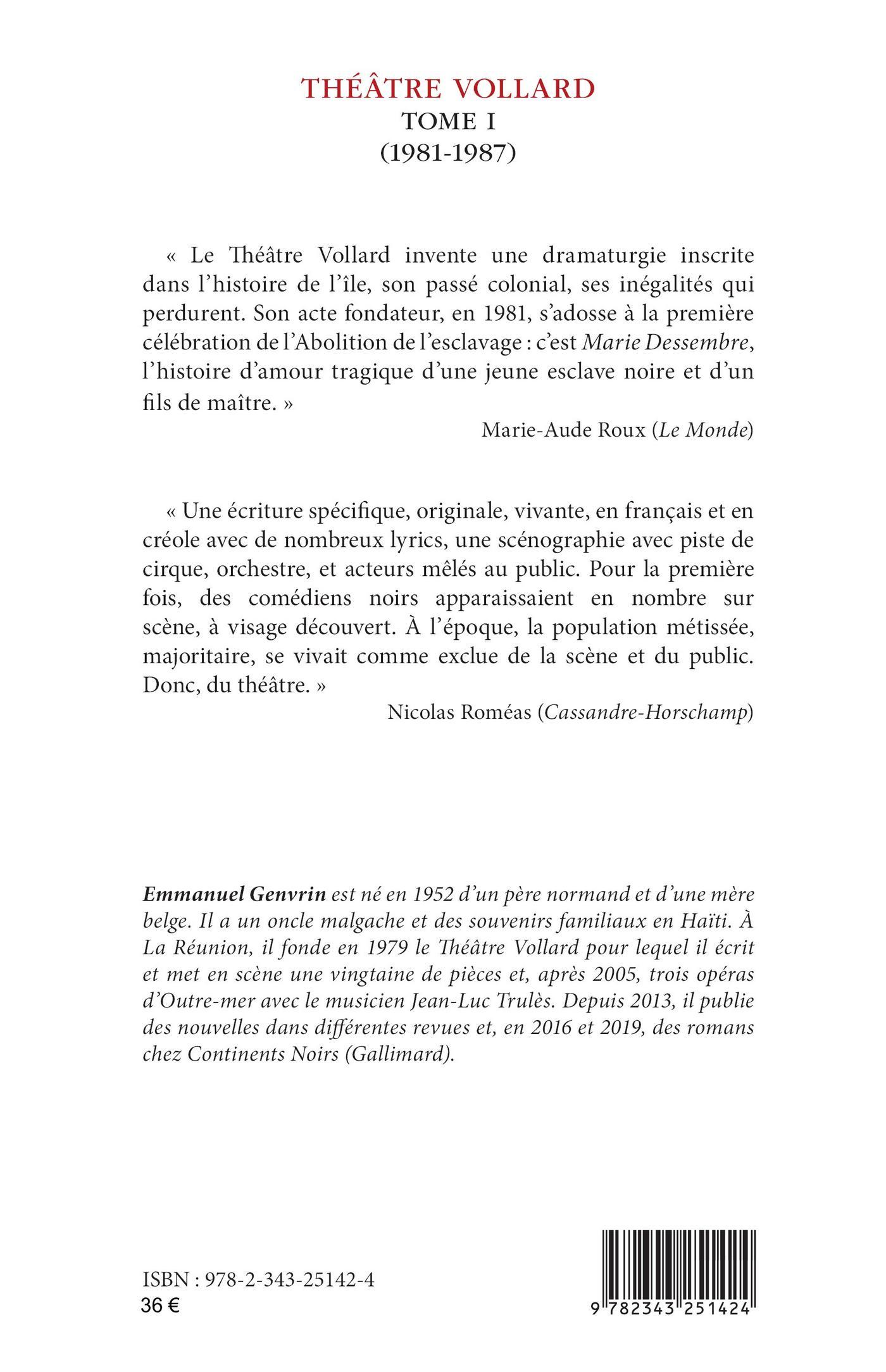 « Le Théâtre Vollard invente une dramaturgie inscrite dans l’histoire de l’île, son passé colonial, ses inégalités qui perdurent. Son acte fondateur, en 1981, s’adosse à la première célébration de l’Abolition de l’esclavage : c’est Marie Dessembre, l’histoire d’amour tragique d’une jeune esclave noire et d’un fils de maître. » Marie-Aude Roux (Le Monde)« Une écriture spécifique, originale, vivante, en français et en créole avec de nombreux lyrics, une scénographie avec piste de cirque, orchestre, et acteurs mêlés au public. Pour la première fois, des comédiens noirs apparaissaient en nombre sur scène, à visage découvert. À l’époque, la population métissée, majoritaire, se vivait comme exclue de la scène et du public. Donc, du théâtre. » Nicolas Roméas (Cassandre-Horschamp)