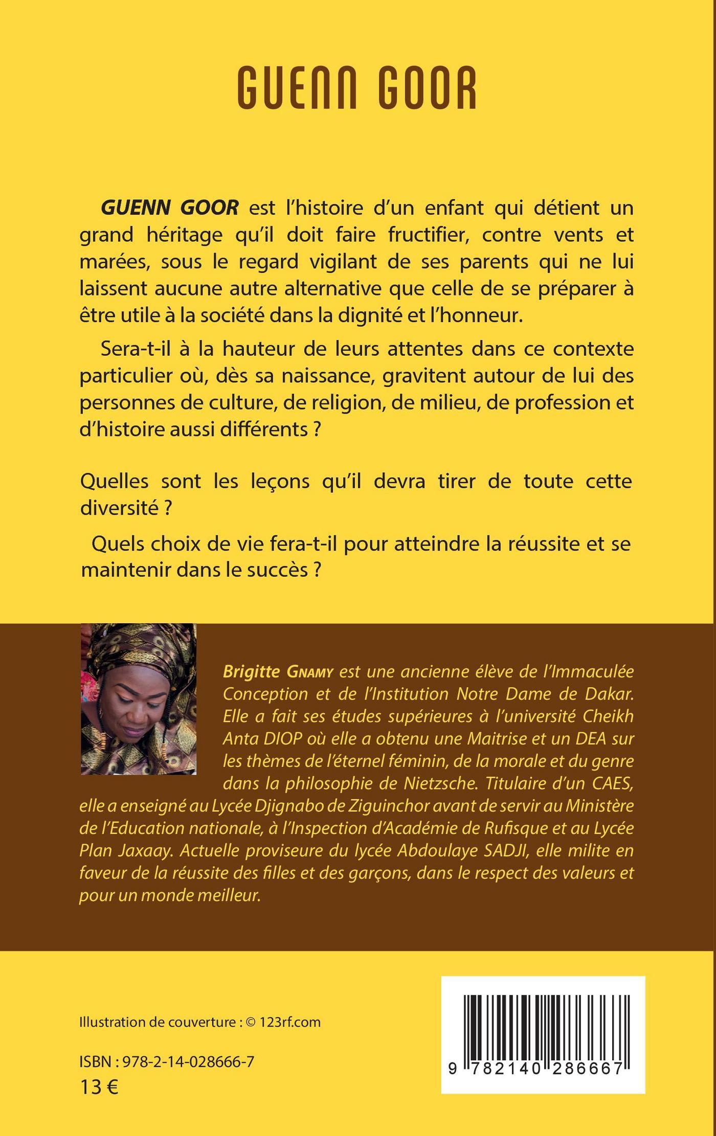 GUENN GOOR est l'histoire d'un enfant qui détient un grand héritage qu'il doit faire fructifier, contre vents et marées, sous le regard vigilant de ses parents qui ne lui laissent aucune autre alternative que celle de se préparer à être utile à la société dans la dignité et l'honneur. Sera-t-il à la hauteur de leurs attentes dans ce contexte particulier où, dès sa naissance, gravitent autour de lui des personnes de culture, de religion, de milieu, de profession et d'histoire aussi différents ? Quelles sont les leçons qu'il devra tirer de toute cette diversité ? Quels choix de vie fera-t-il pour atteindre la réussite et se maintenir dans le succès ?