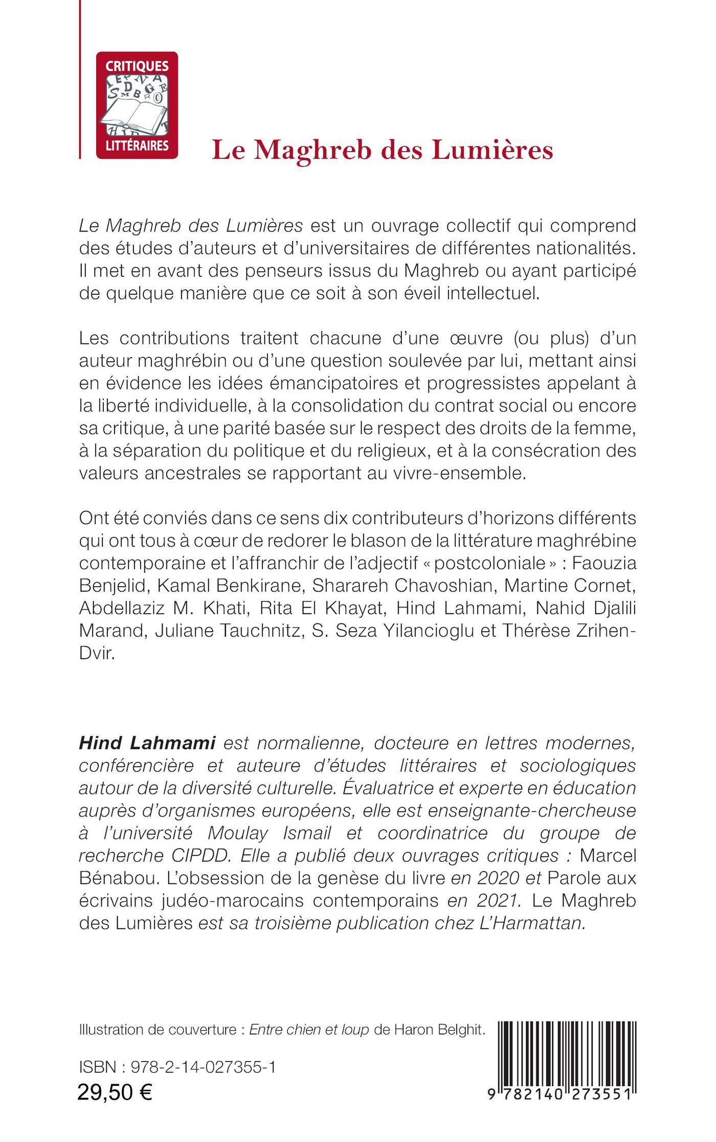 Le Maghreb des Lumières est un ouvrage collectif qui comprend des études d’auteurs et d’universitaires de différentes nationalités. Il met en avant des penseurs issus du Maghreb ou ayant participé de quelque manière que ce soit à son éveil intellectuel. Les contributions traitent chacune d’une oeuvre (ou plus) d’un auteur maghrébin ou d’une question soulevée par lui, mettant ainsi en évidence les idées émancipatoires et progressistes appelant à la liberté individuelle, à la consolidation du contrat social ou encore sa critique, à une parité basée sur le respect des droits de la femme, à la séparation du politique et du religieux, et à la consécration des valeurs ancestrales se rapportant au vivre-ensemble.