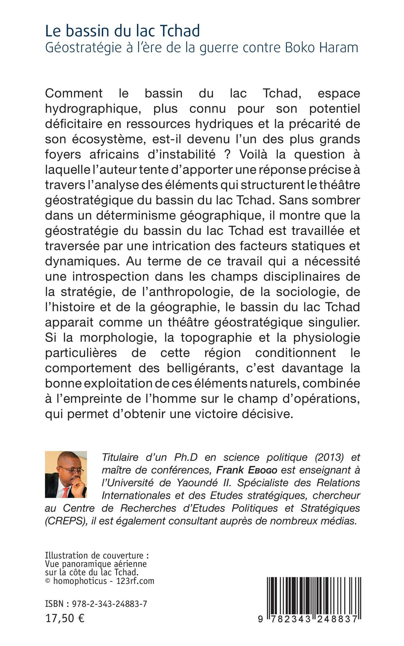 Comment le bassin du lac Tchad, espace hydrographique, plus connu pour son potentiel déficitaire en ressources hydriques et la précarité de son écosystème, est-il devenu l'un des plus grands foyers africains d'instabilité ? Voilà la question à laquelle l'auteur tente d'apporter une réponse précise à travers l'analyse des éléments qui structurent le théâtre géostratégique du bassin du lac Tchad. Sans sombrer dans un déterminisme géographique, il montre que la géostratégie du bassin du lac Tchad est travaillée et traversée par une intrication des facteurs statiques et dynamiques. Au terme de ce travail qui a nécessité une introspection dans les champs disciplinaires de la stratégie, de l'anthropologie, de la sociologie, de l'histoire et de la géographie, le bassin du lac Tchad apparait comme un théâtre géostratégique singulier.