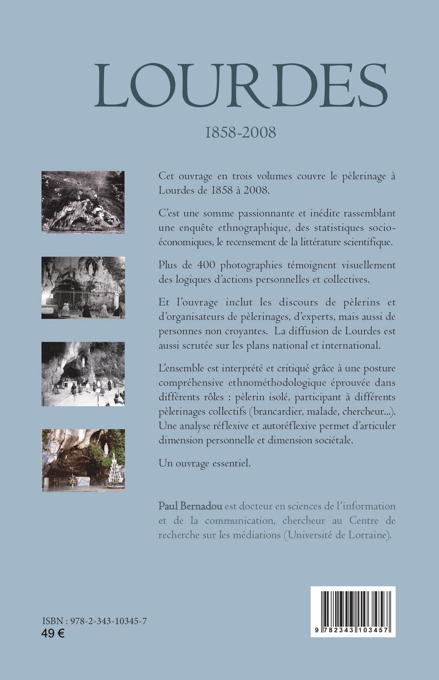 Cet ouvrage couvre le pèlerinage à Lourdes de 1858 à 2008. C’est une somme passionnante et inédite rassemblant une enquête ethnographique, des statistiques socio-économiques, le recensement de la littérature scientifique. Plus de 400 photographies témoignent visuellement des logiques d’actions personnelles et collectives. Et l’ouvrage inclut les discours de pèlerins et d’organisateurs de pèlerinages, d’experts, mais aussi de personnes non croyantes. La diffusion de Lourdes est aussi scrutée sur les plans national et international. L’ensemble est interprété et critiqué grâce à une posture compréhensive ethnométhodologique éprouvée dans différents rôles : pèlerin isolé, participant à différents pèlerinages collectifs (brancardier, malade, chercheur...). Une analyse réflexive et autoréflexive permet d’articuler dimension personnelle et dimension sociétale.