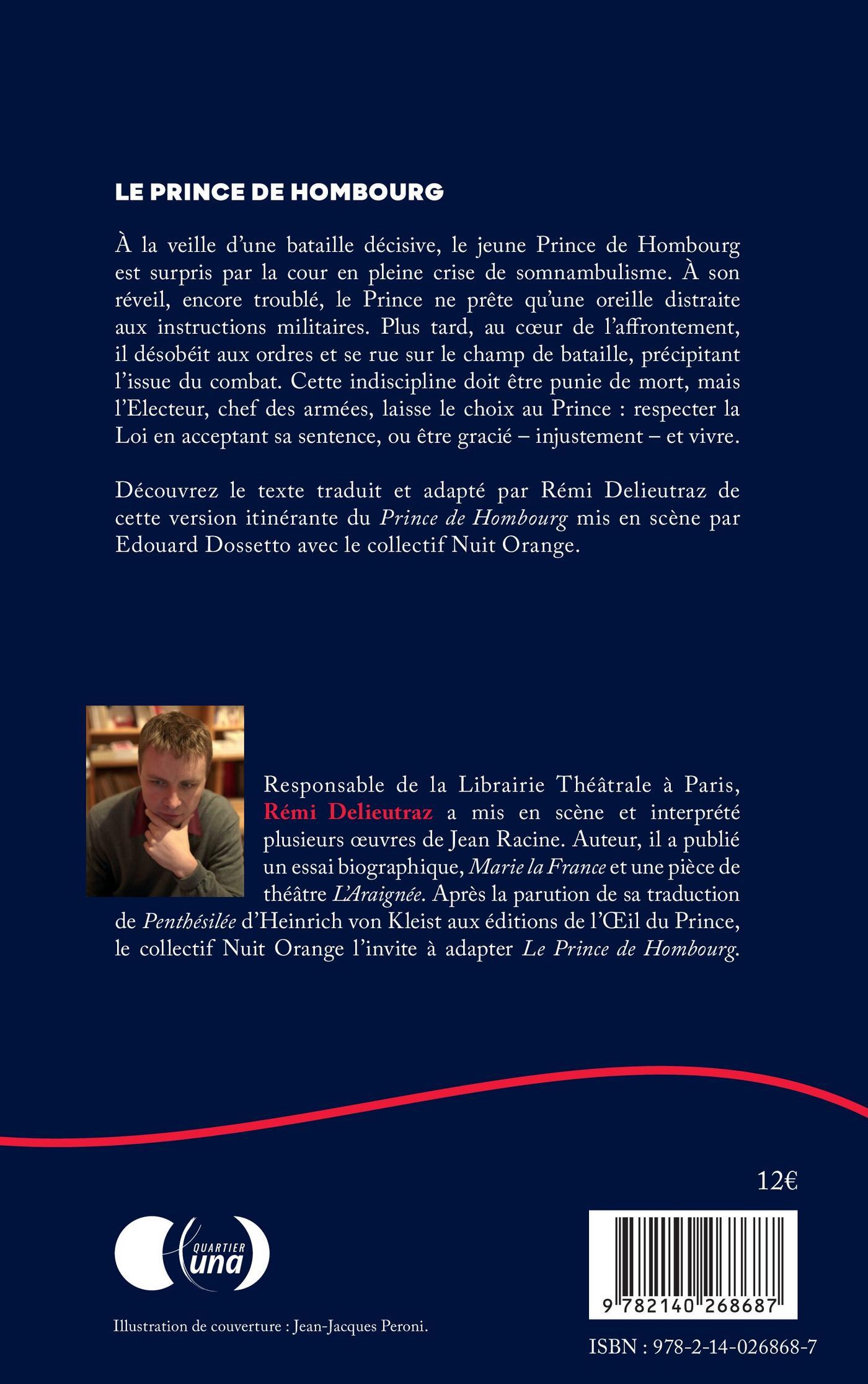 À la veille d’une bataille décisive, le jeune Prince de Hombourg est surpris par la cour en pleine crise de somnambulisme. À son réveil, encore troublé, le Prince ne prête qu’une oreille distraite aux instructions militaires. Plus tard, au cœur de l’affrontement, il désobéit aux ordres et se rue sur le champ de bataille, précipitant l’issue du combat. Cette indiscipline doit être punie de mort, mais l’Electeur, chef des armées, laisse le choix au Prince : respecter la Loi en acceptant sa sentence, ou être gracié - injustement - et vivre.Découvrez le texte traduit et adapté par Rémi Delieutraz de cette version itinérante du Prince de Hombourg mis en scène par Edouard Dossetto avec le collectif Nuit Orange.