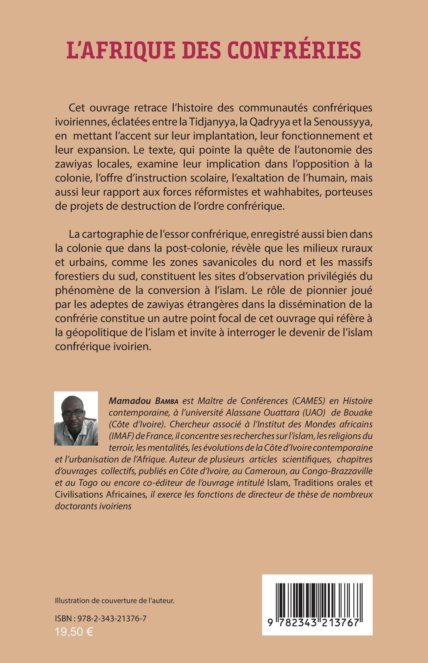Cet ouvrage retrace l'histoire des communautés confrériques ivoiriennes, éclatées entre la Tidjanyya, la Qadryya et la Senoussyya, en mettant l'accent sur leur implantation, leur fonctionnement et leur expansion. La cartographie de l'essor confrérique révèle que les milieux ruraux et urbains, comme les zones savanicoles du nord et les massifs forestiers du sud, constituent les sites d'observation privilégiés du phénomène de la conversion à l'islam. Le rôle de pionnier joué par les adeptes de zawiyas étrangères dans la dissémination de la confrérie constitue un autre point focal de cet ouvrage qui réfère à la géopolitique de l'islam et invite à interroger le devenir de l'islam confrérique ivoirien.