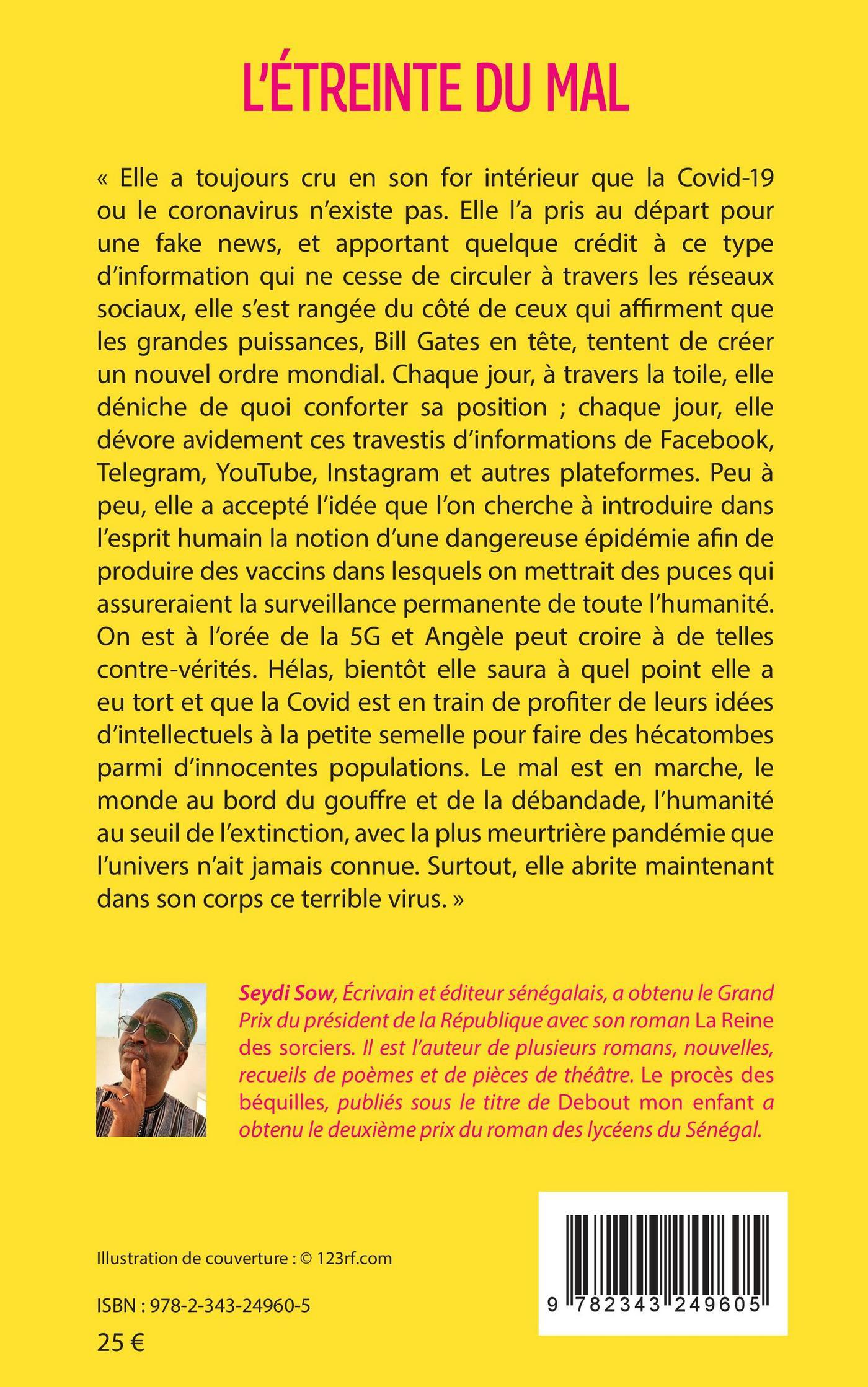 « Elle a toujours cru en son for intérieur que la Covid-19 ou le coronavirus n'existe pas. Elle l'a pris au départ pour une fake news, et apportant quelque crédit à ce type d'information qui ne cesse de circuler à travers les réseaux sociaux, elle s'est rangée du côté de ceux qui affirment que les grandes puissances, Bill Gates en tête, tentent de créer un nouvel ordre mondial.Peu à peu, elle a accepté l'idée que l'on cherche à introduire dans l'esprit humain la notion d'une dangereuse épidémie afin de produire des vaccins dans lesquels on mettrait des puces qui assureraient la surveillance permanente de toute l'humanité. On est à l'orée de la 5G et Angèle peut croire à de telles contre-vérités. Hélas, bientôt elle saura à quel point elle a eu tort... Le mal est en marche, l'humanité au seuil de l'extinction, et surtout, elle abrite maintenant dans son corps ce terrible virus. »